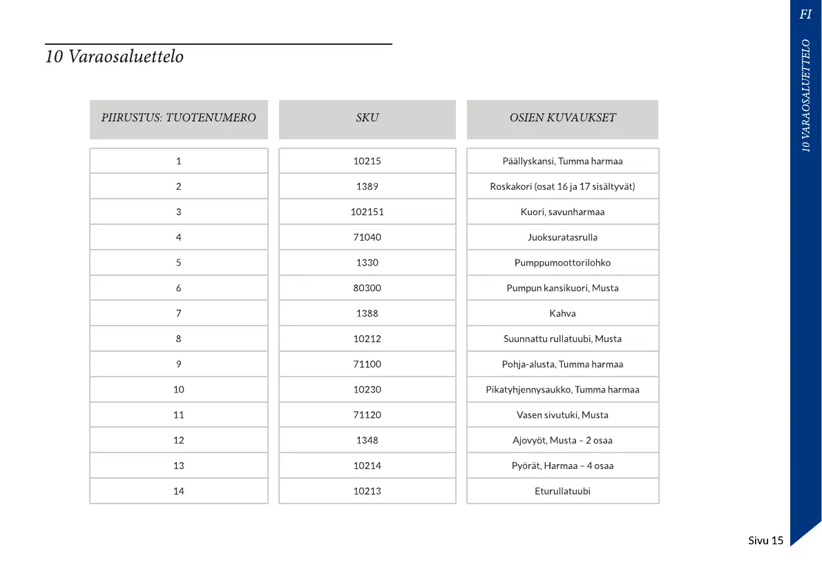 PIIRUSTUS: TUOTENUMERO SKU OSIEN KUVAUKSET