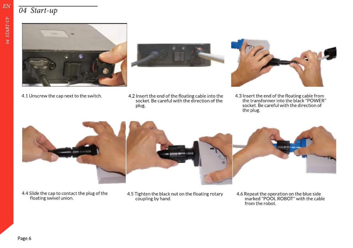 4.1 Unscrew the cap next to the switch. 4.3 Insert the end of the floating cable from