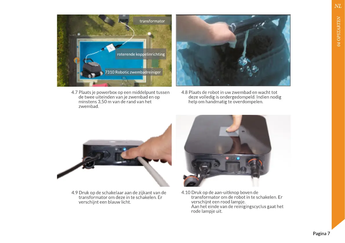 4.8 Plaats de robot in uw zwembad en wacht tot