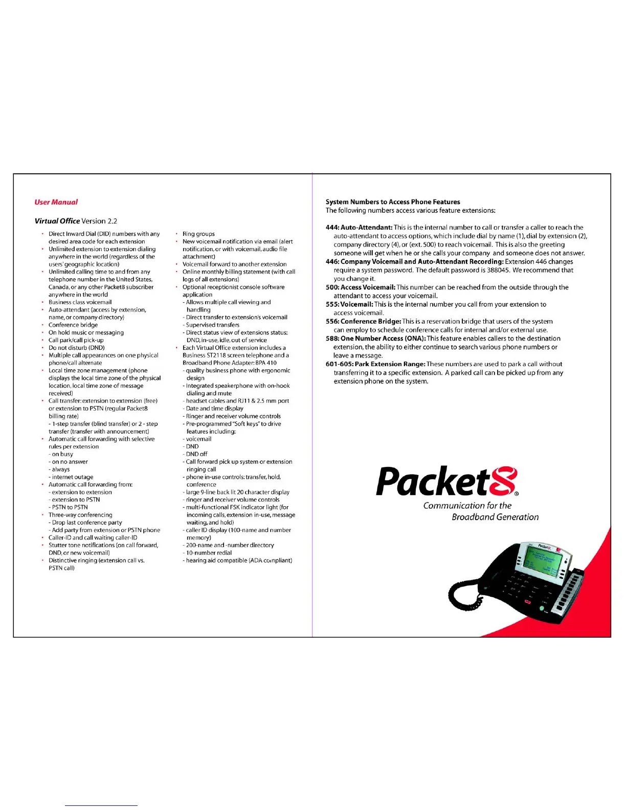 8x8 Inc Virtual Office - System Access Numbers; Accessing Phone Features