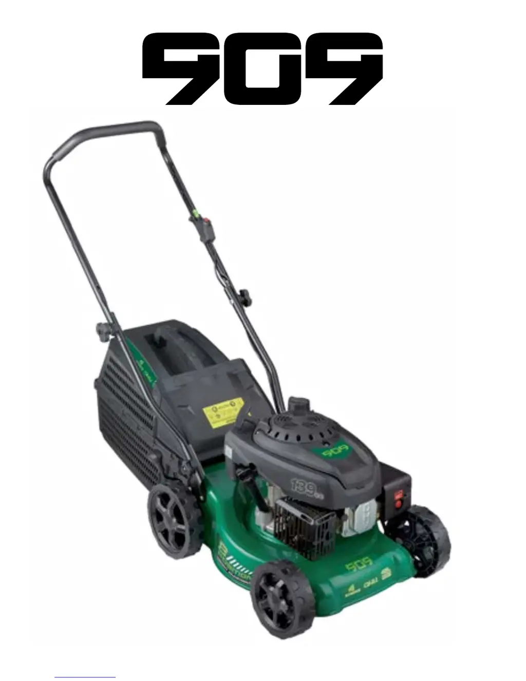 If your 909 Lawn Mower engine won't start, first check if the fuel tank is empty and refuel if needed. Also, check the oil level using the dipstick and add oil if it's low. Inspect the spark plug for dirt or wear, cleaning or replacing it as necessary. Ensure the cutting height is set high enough, so the blade doesn't hit the grass when starting. Drain any old fuel from the fuel tank and the carburetor bowl. Finally, make sure the On/Off switch is set to 'I'.