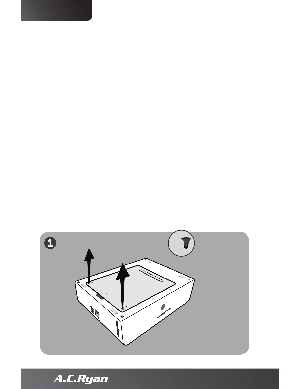 Bitte entfernen Sie die zwei schwarzen Schrauben und heben