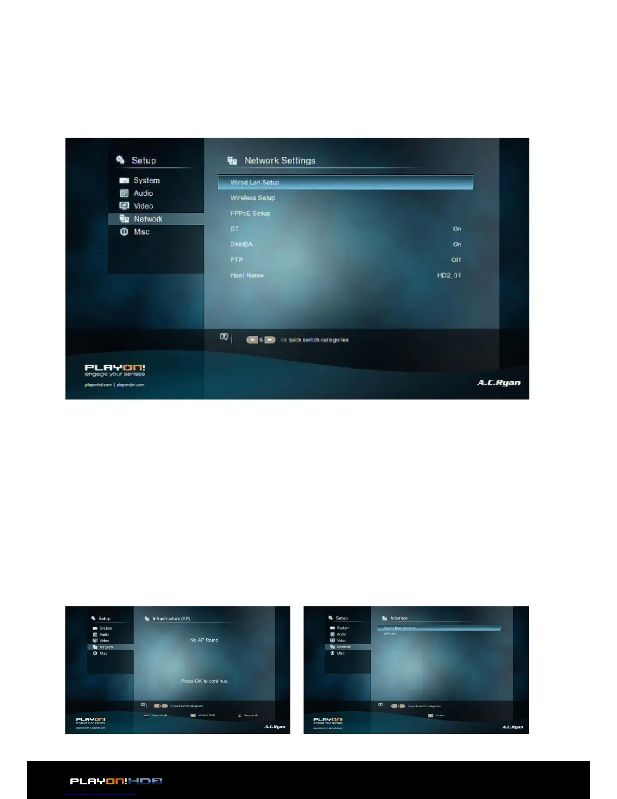 and WPS (AP) mode. Follow the prompting message on the screen and press Play