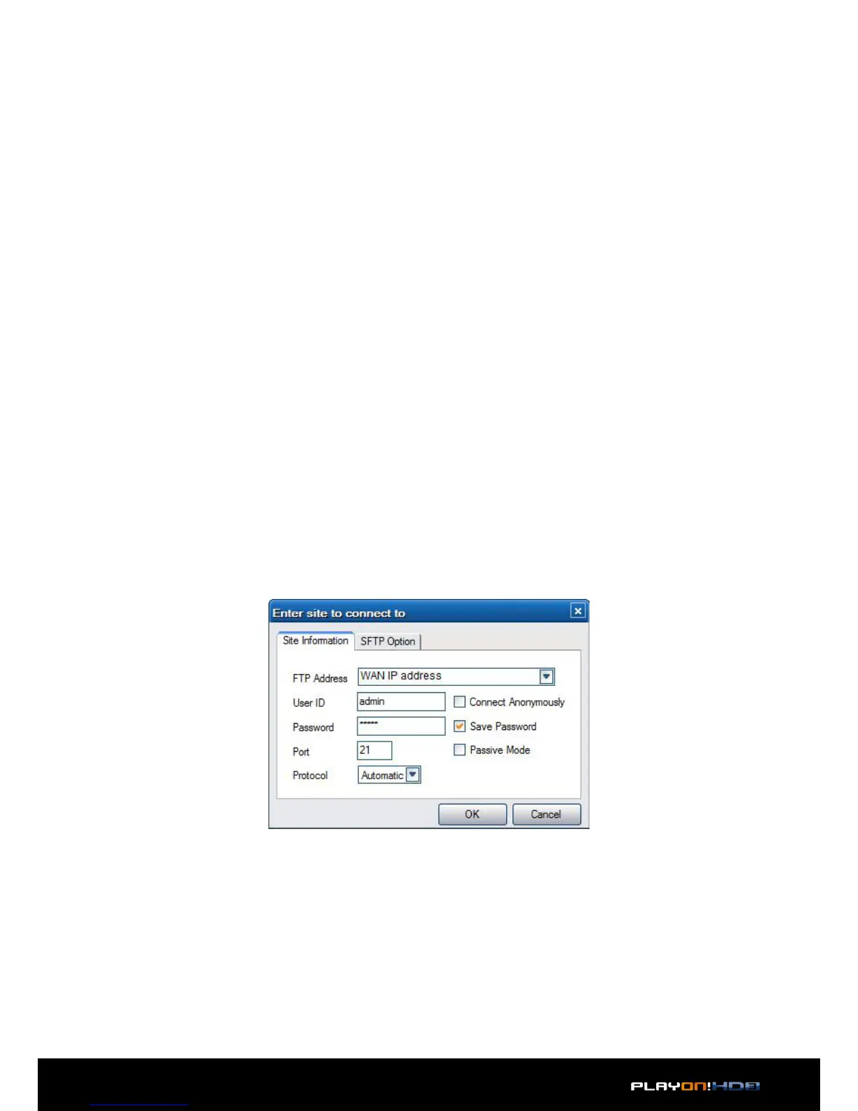 Be sure to start the FTP service with your User Name and Password as discussed at