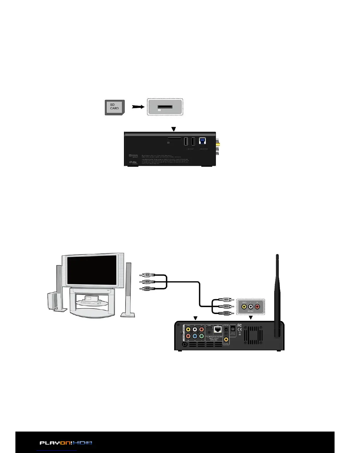 1. Follow the picture and plug in the 3 color connector to the player’s A/V OUT