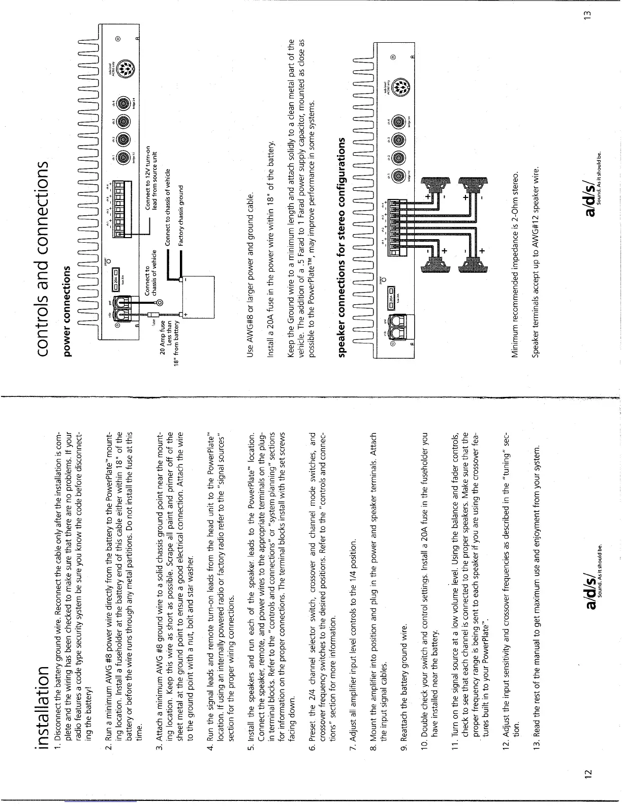 a/d/s/ P440 - Installation; Installation Procedure; Power Connections; Speaker Connections (Stereo)
