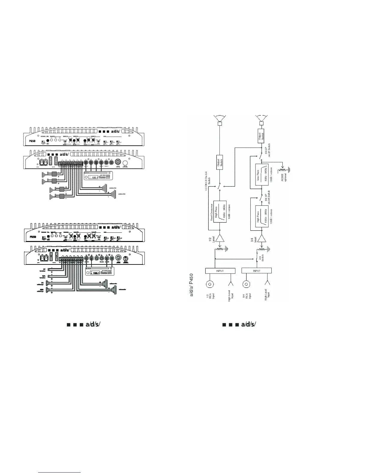 System 1 – P650 used in 6-channel mode. Channels 1/2 are high-passed for front speakers. Chan-