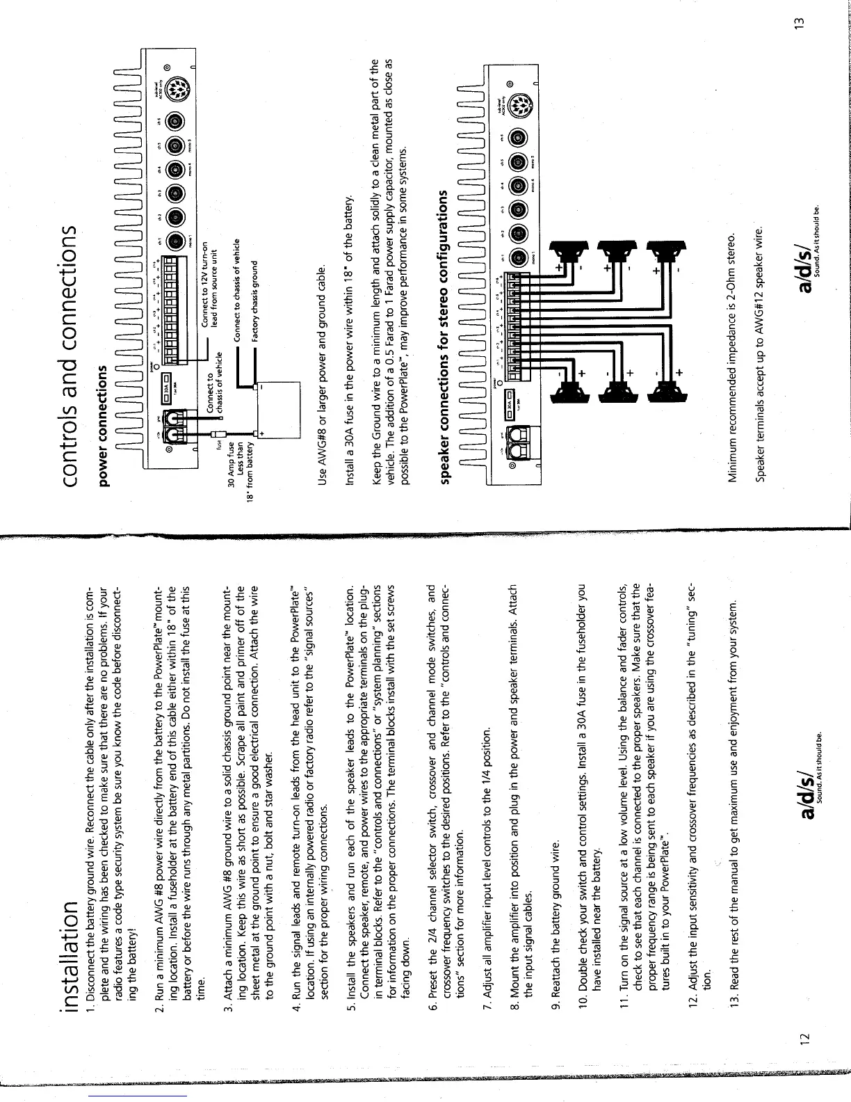 a/d/s/ P640 - installation; Disconnect the battery ground wire; Run a minimum AWG #8 power wire; Attach a minimum AWG #8 ground wire