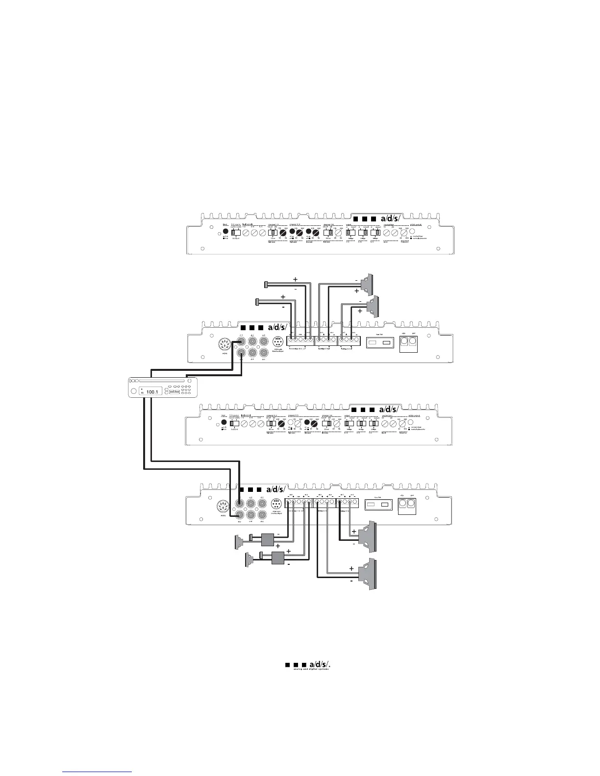 the second amplifier drives the rear speakers and the subwoofer.