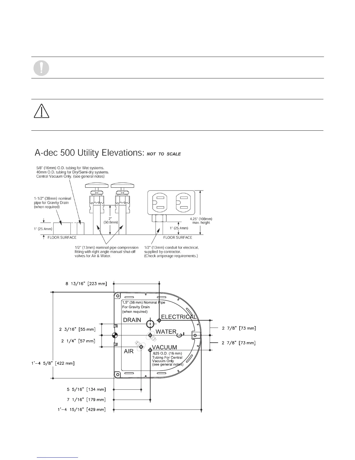 CAUTION Due to specific plumbing elevation restrictions, the height and placement of utilities in the