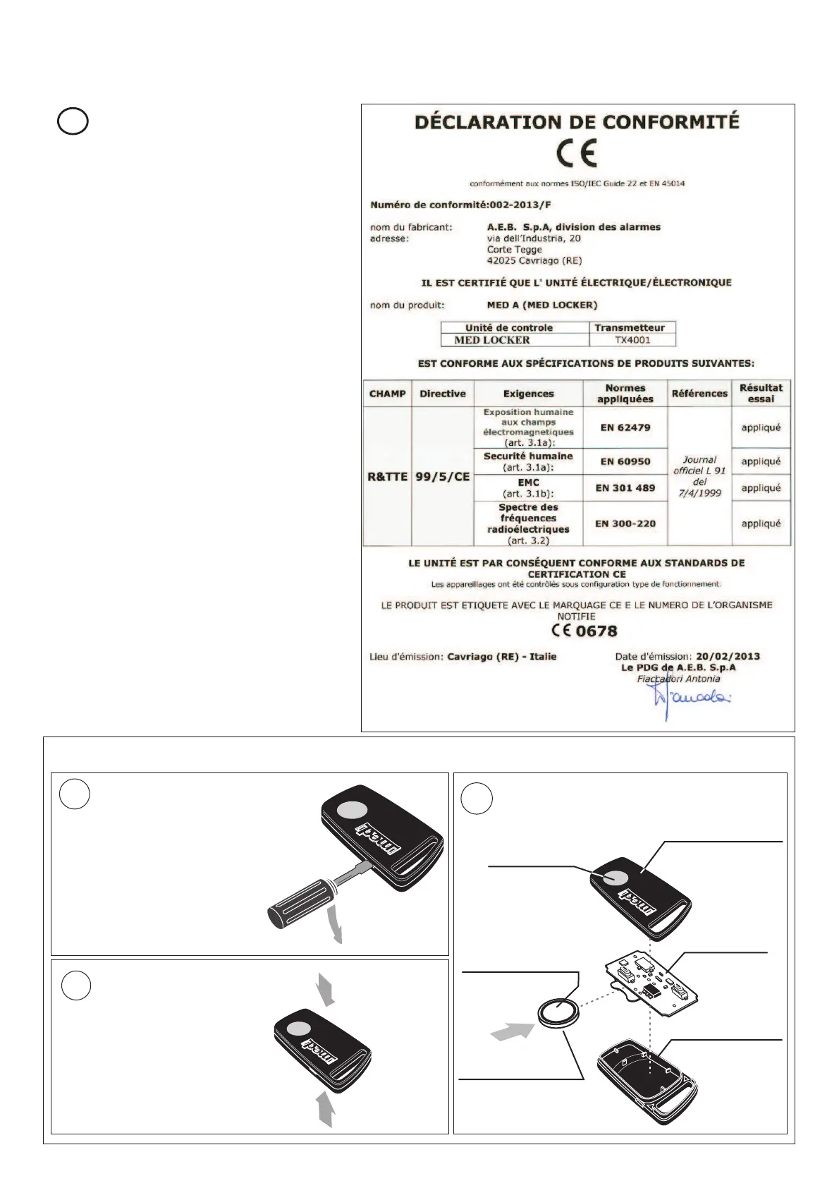 conformité e dans les instructions