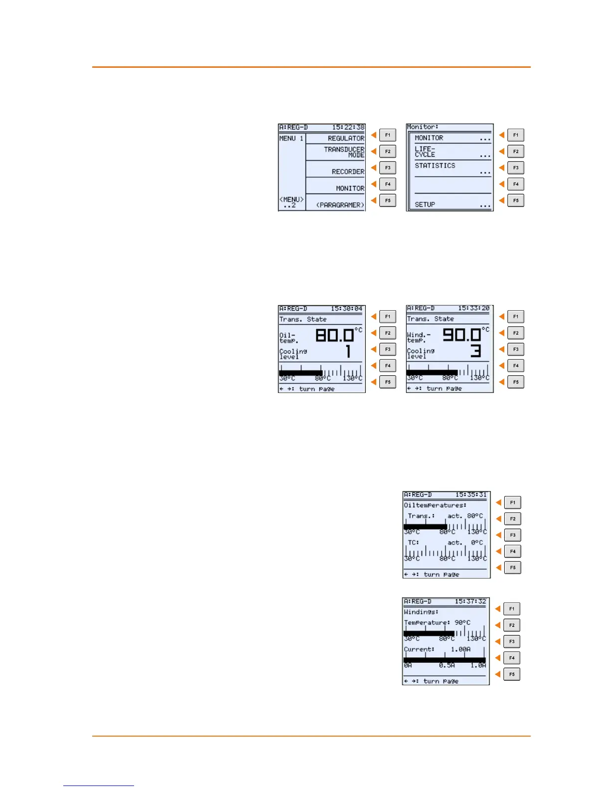 perature or the winding temperature as decimal values and a bar graph. The current cool-