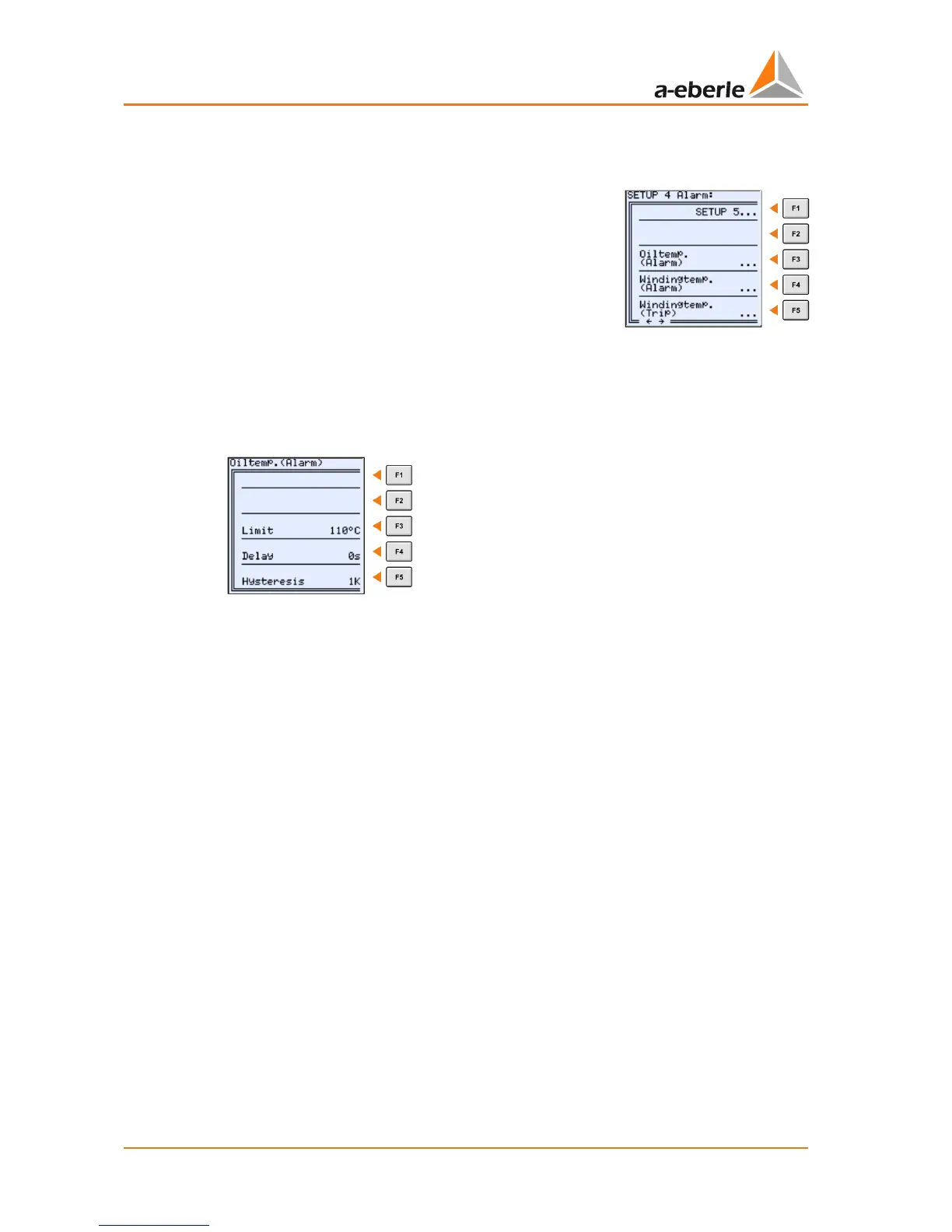 In setup 4 the limits for oil temperature alarm, winding tem-