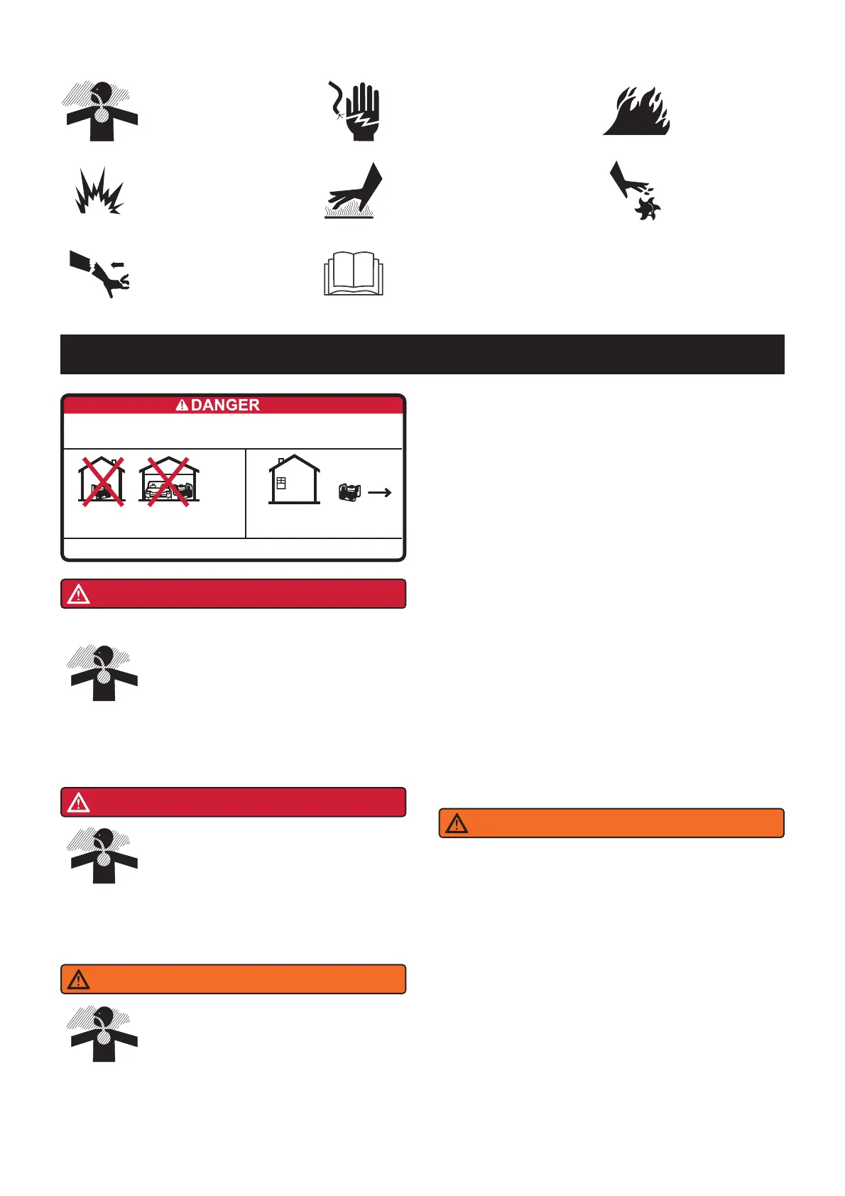 Évitez les autres risques liés au générateur. LISEZ LE MANUEL AVANT D'UTILISER