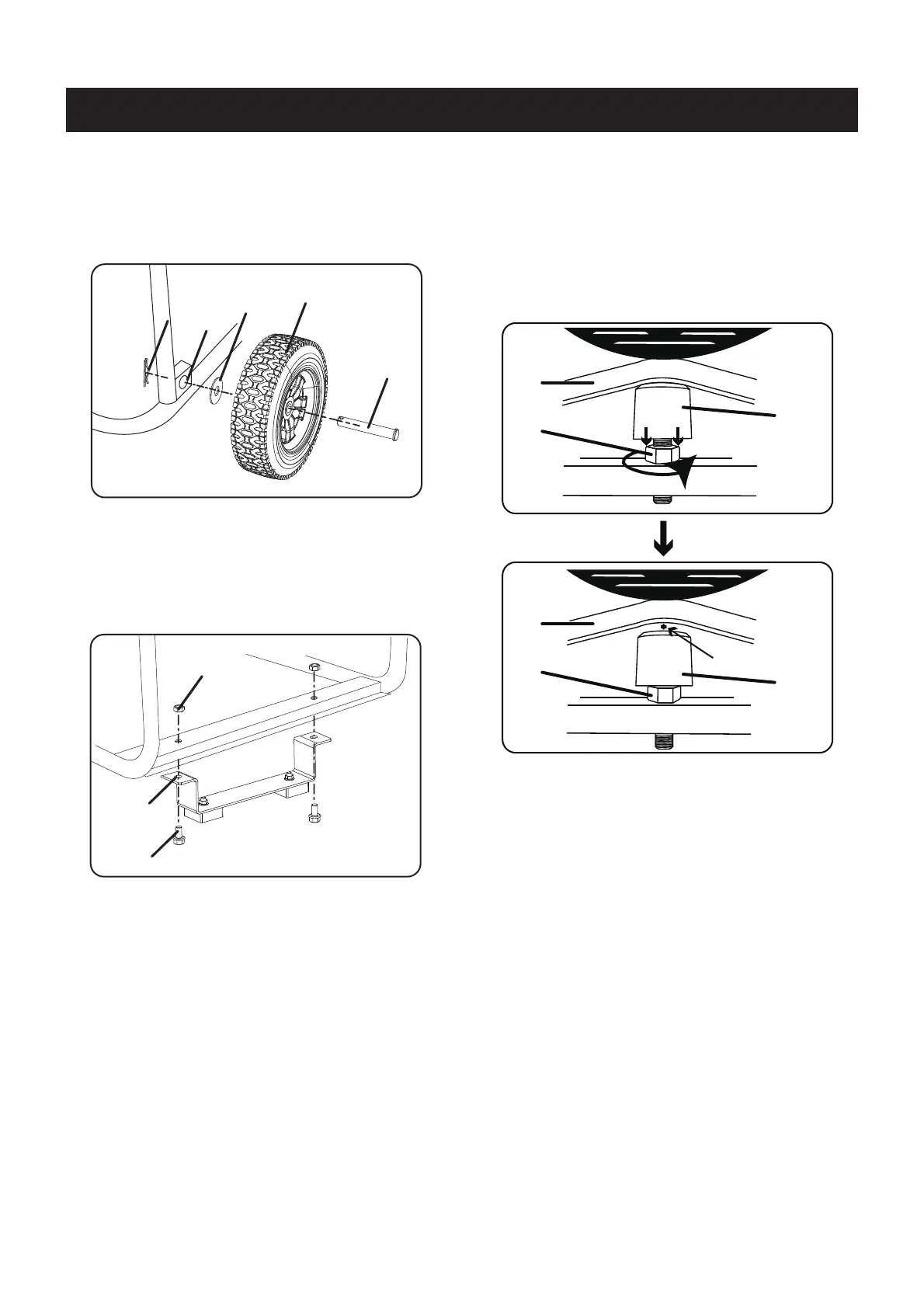 roue (B), la rondelle plate (C) et le trou de l'essieu du