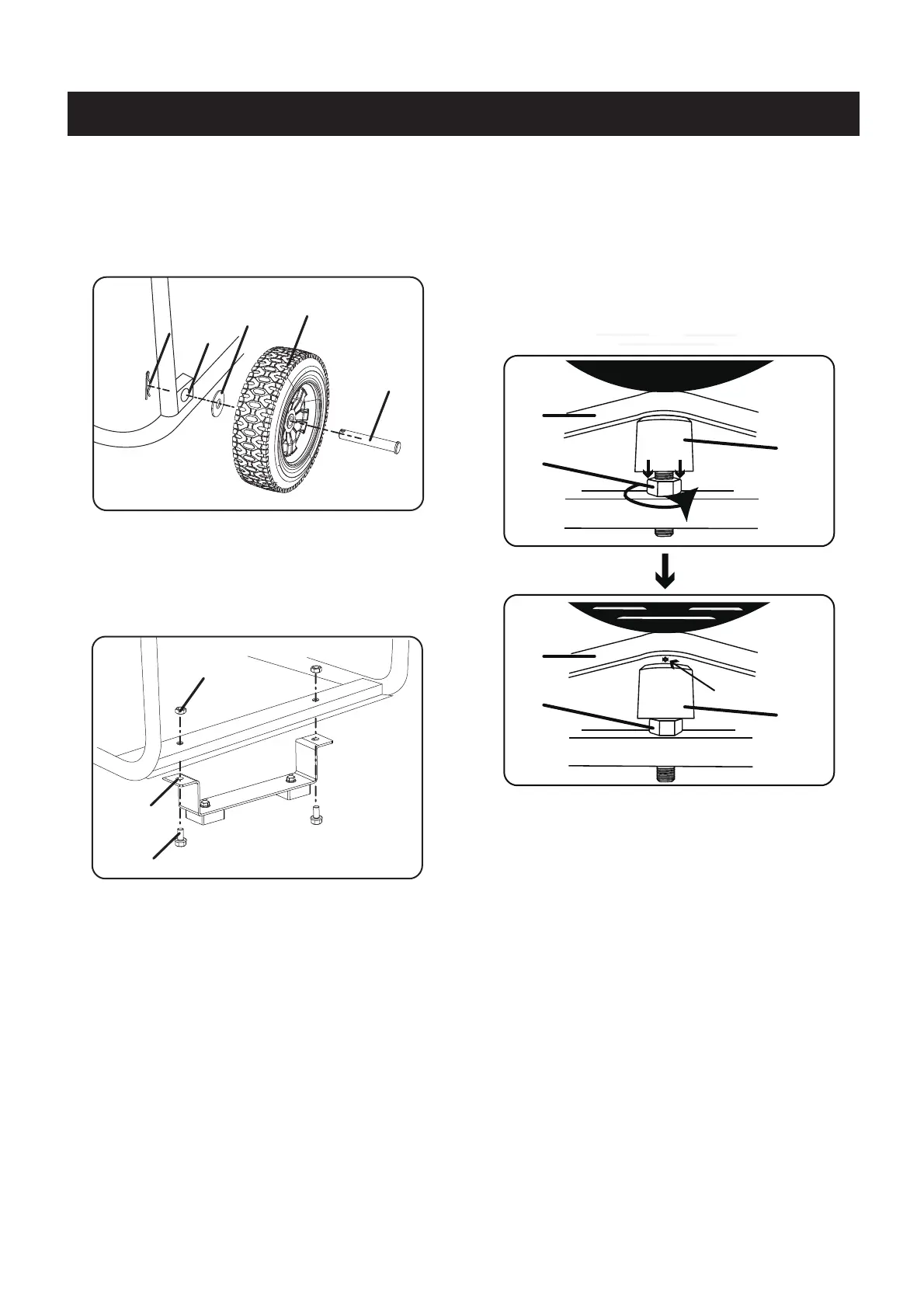 3 - Deslice el pasador del eje (A) a través de la rueda