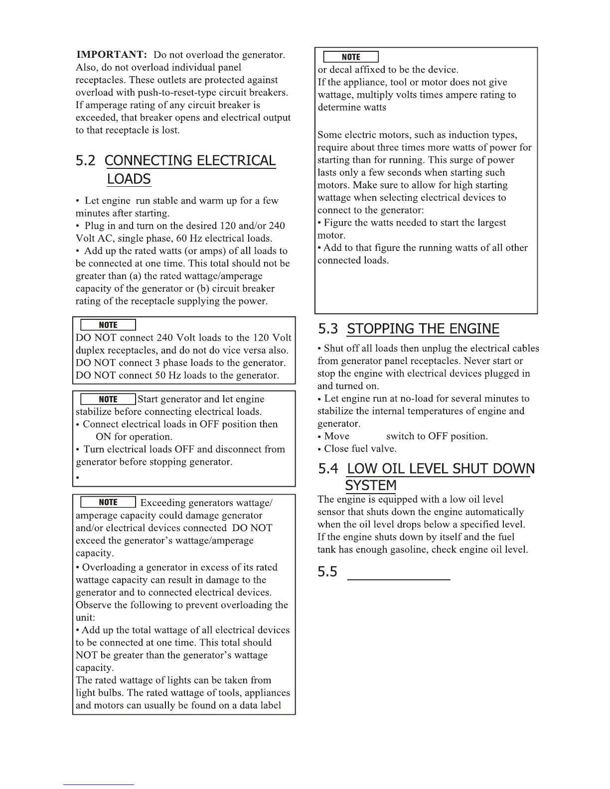 DO NOT overload Generator Capacity