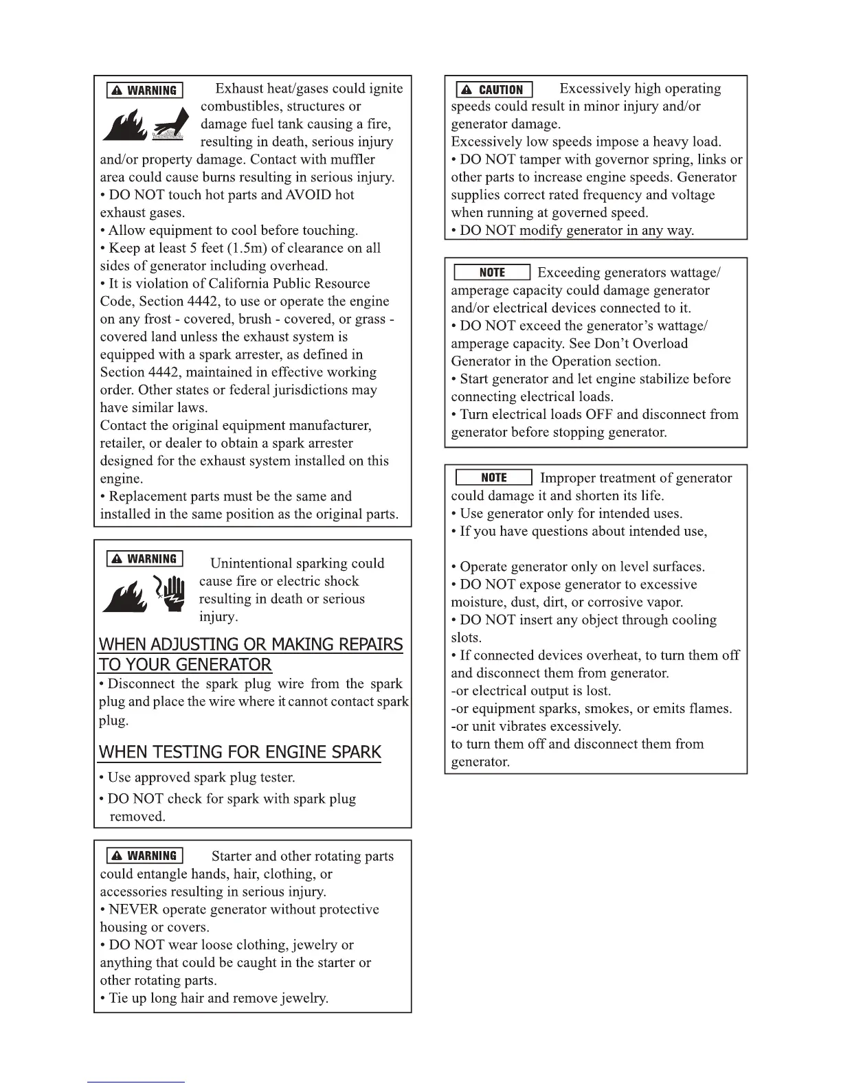 A-iPower SUA9000E - Exhaust Heat and Gas Safety; Generator Overload Warning; Rotating Parts Entanglement Hazard