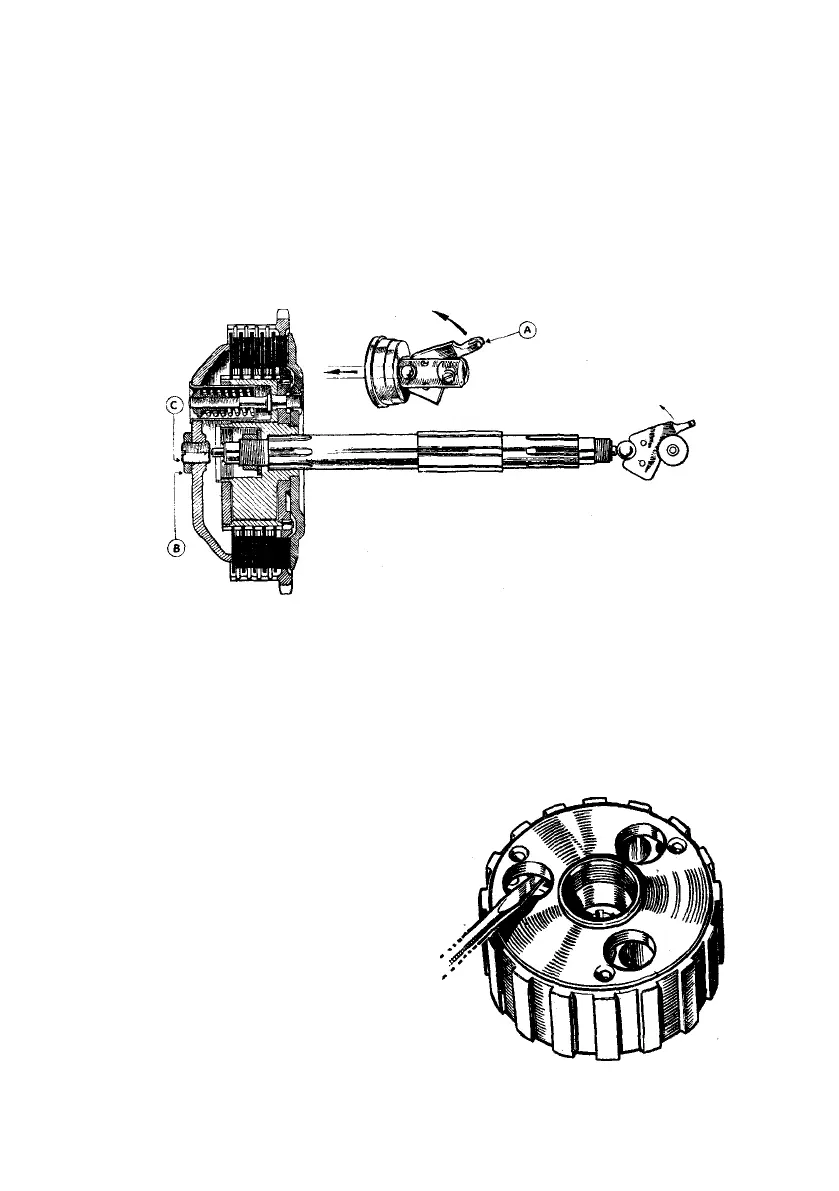 clutch spring adjusting nuts and cups may require attention. Remove the chaincase