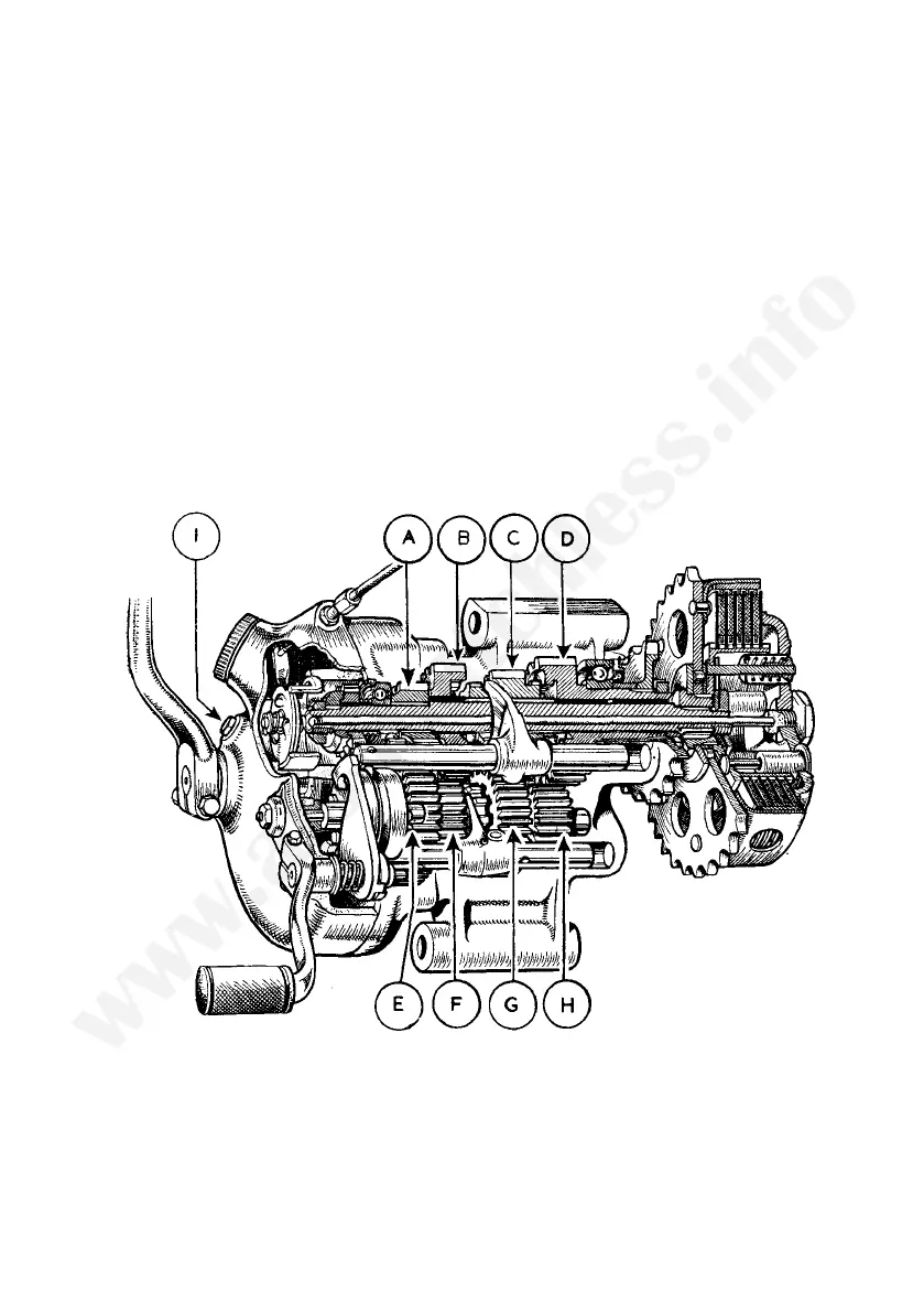 selection and kickstarter mechanism. It will be seen that movement of the foot change
