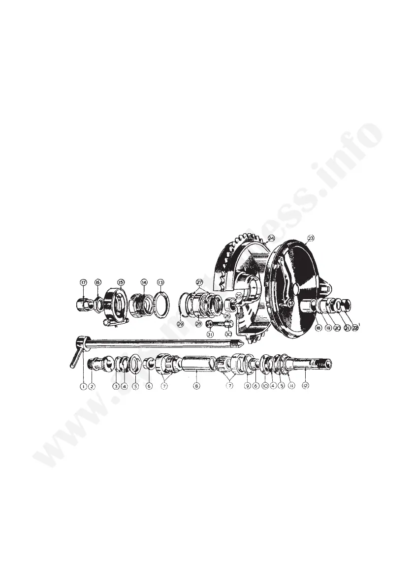 and the speedometer gear box withdrawn. (If wheel is of non-detachable type remove