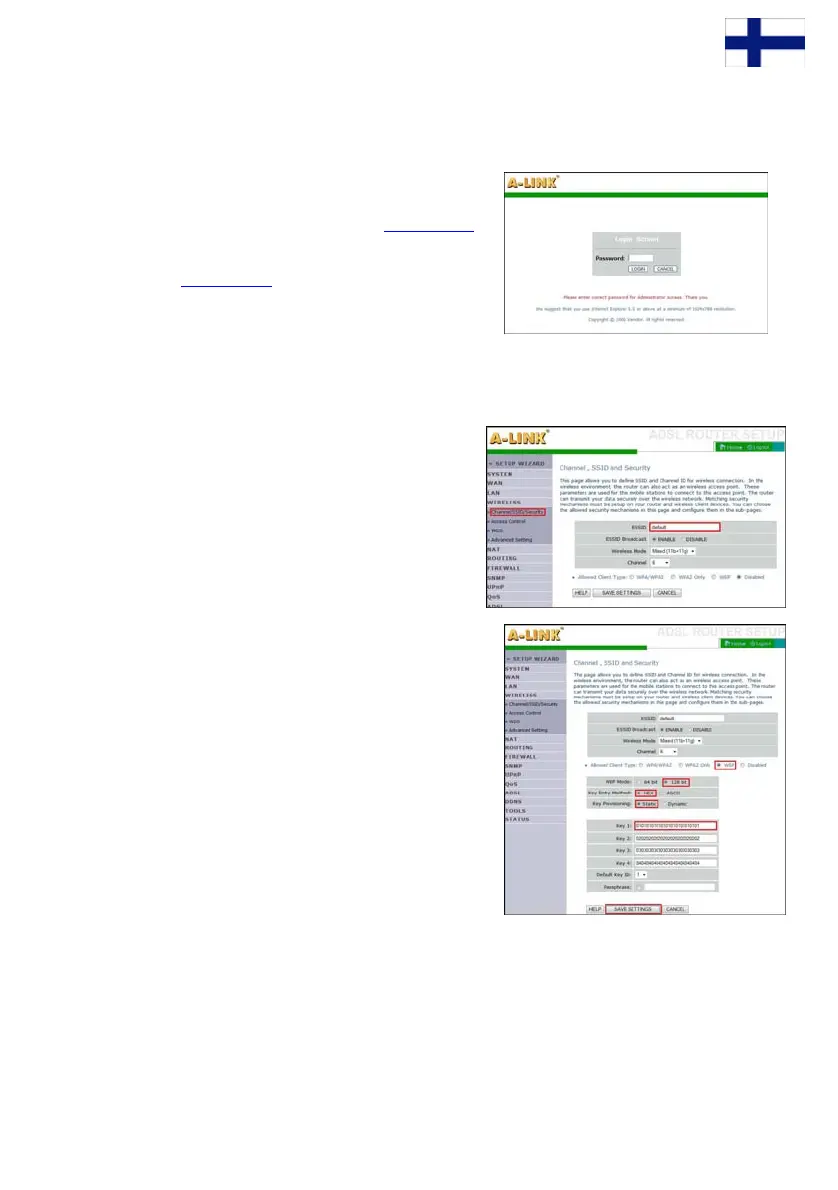 . Kirjautuminen modeemin hallintaliittymään.