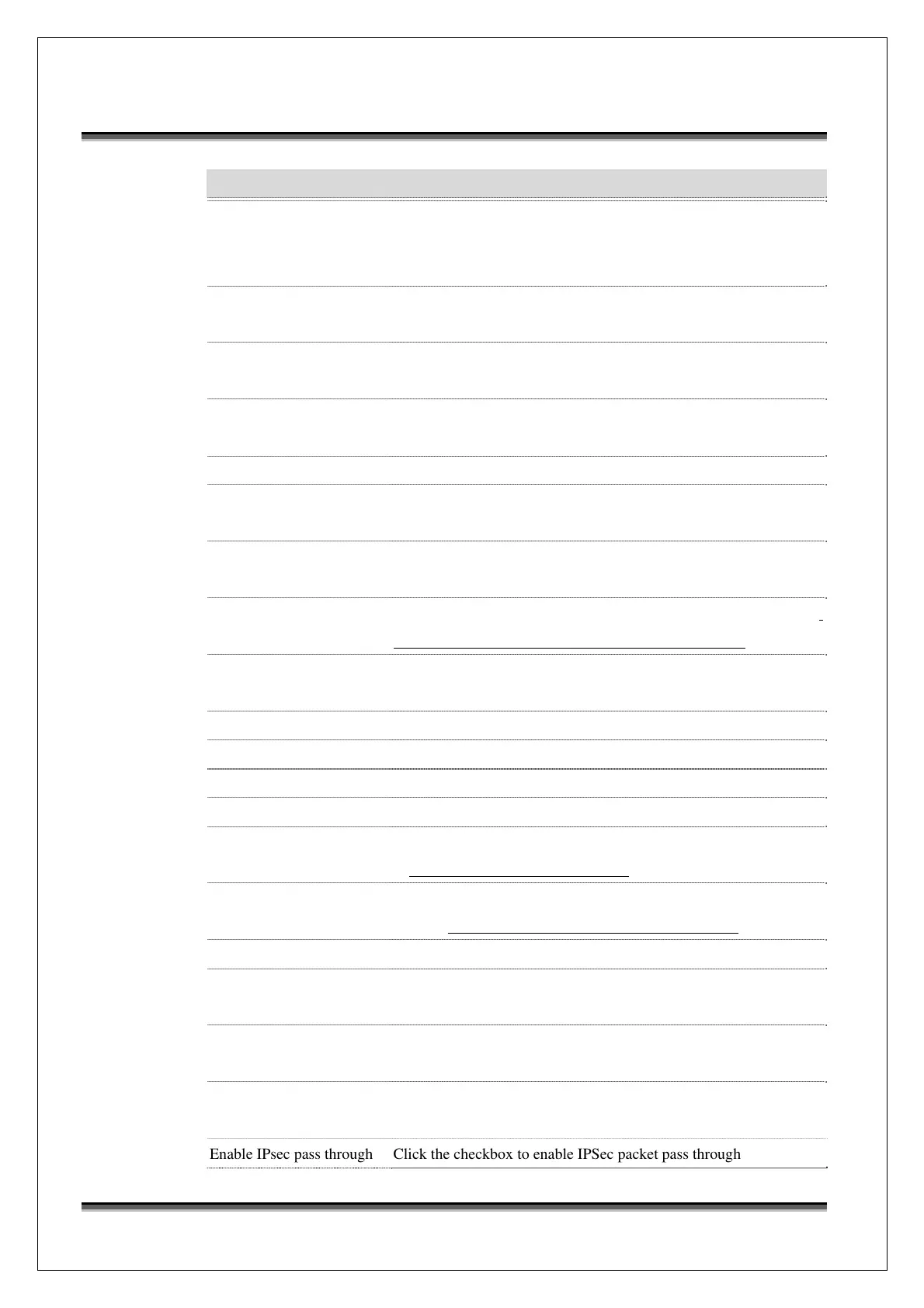 Enable IPsec pass through Click the checkbox to enable IPSec packet pass through