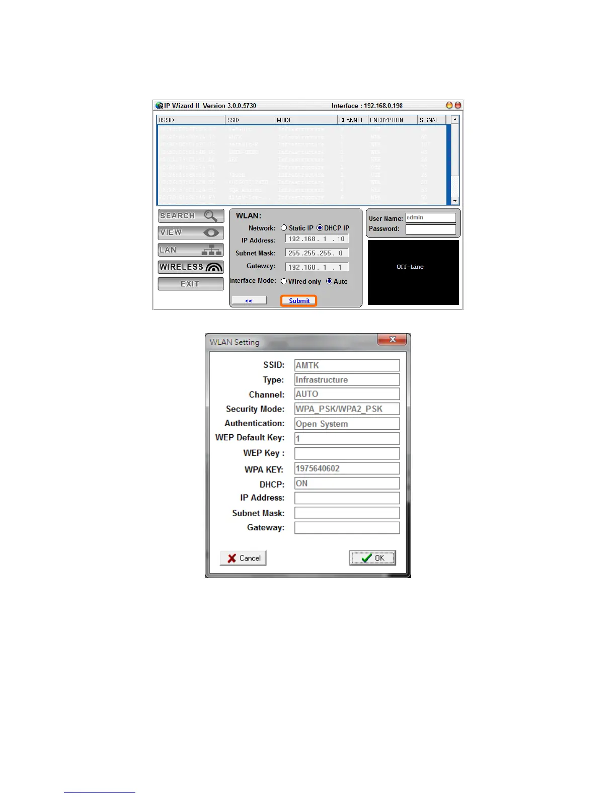 Click OK to confirm these parameters, then IPWizard II will start to configure this camera