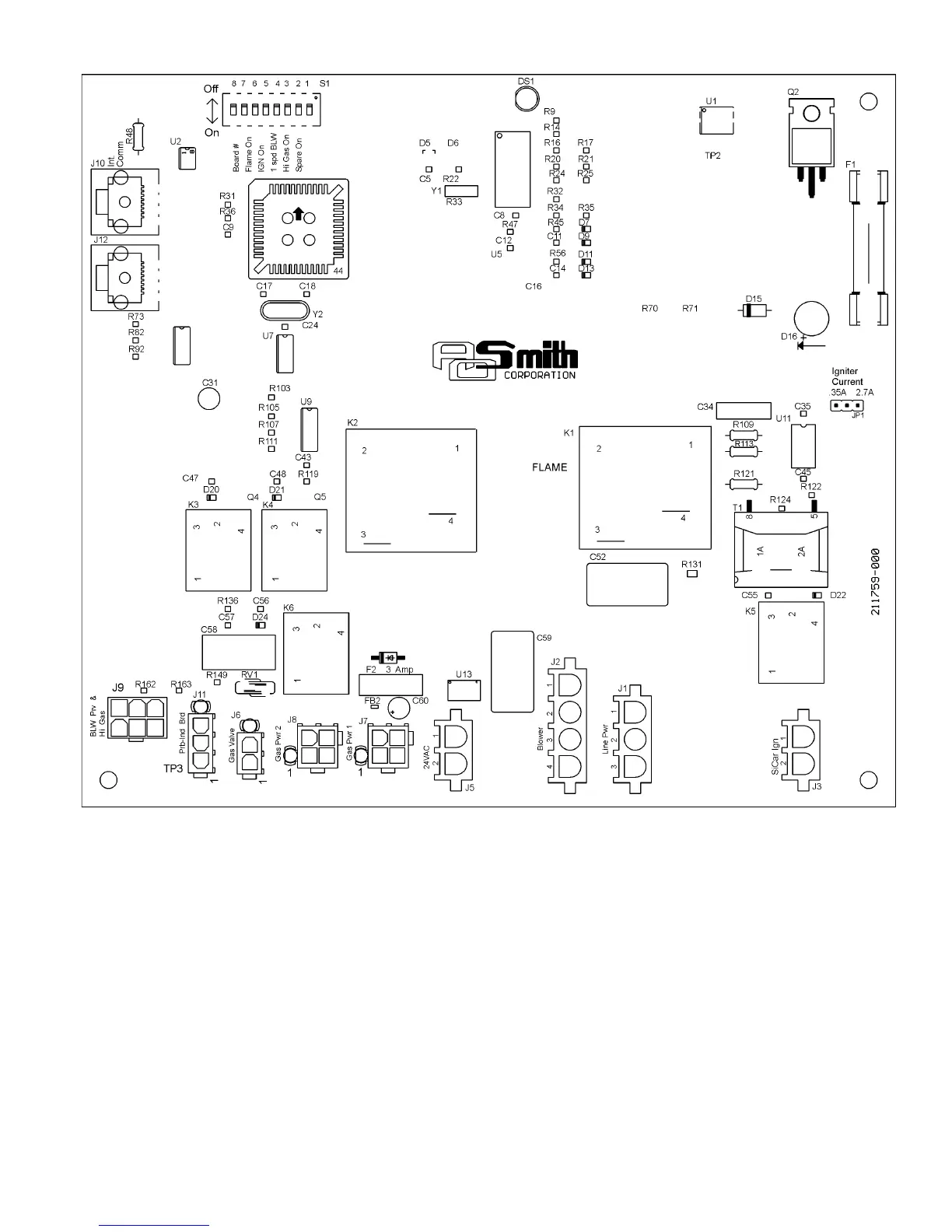 A.O. Smith 400 - FCB Flame Control Board Diagram; FCB Component Layout