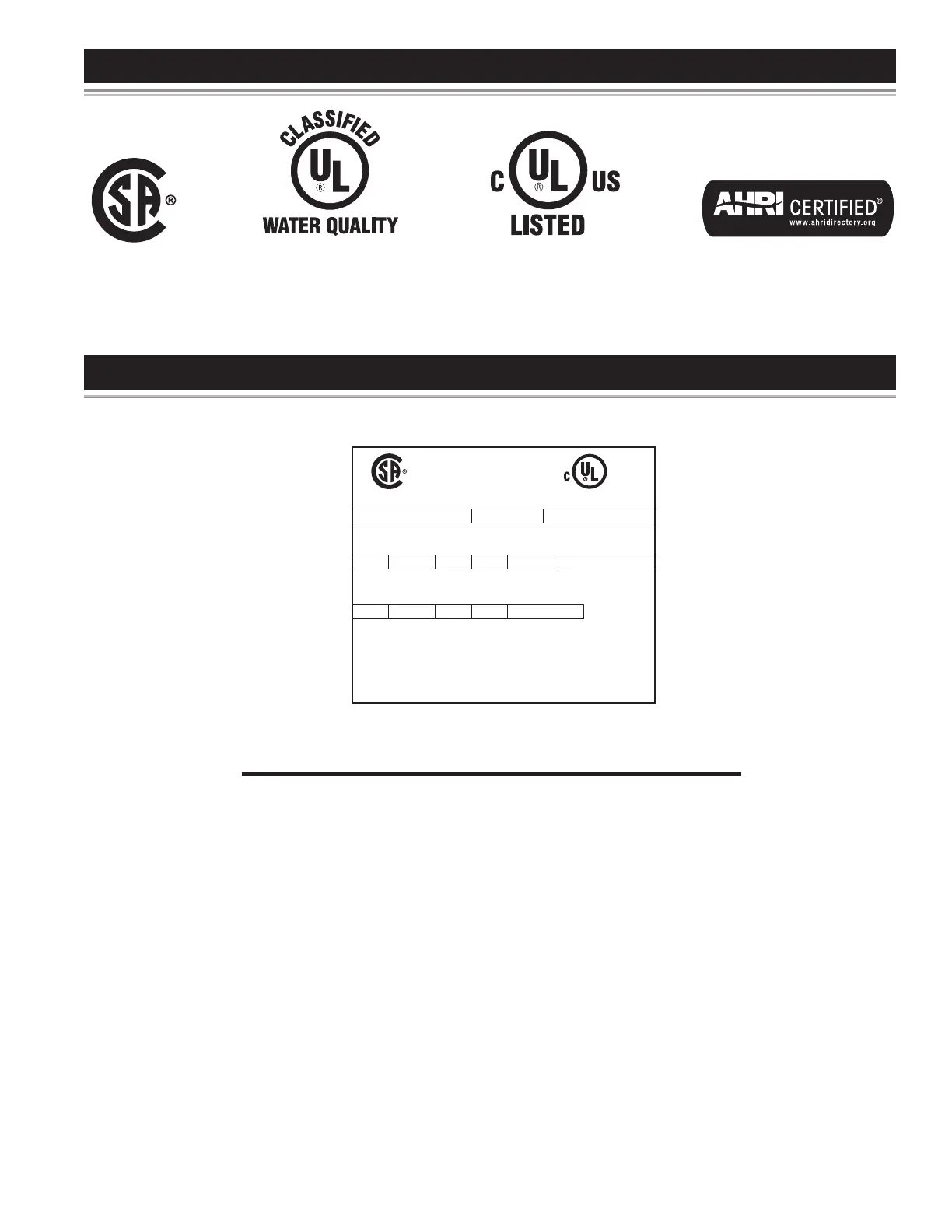 A.O. Smith 52 - Approvals; Model and Rating