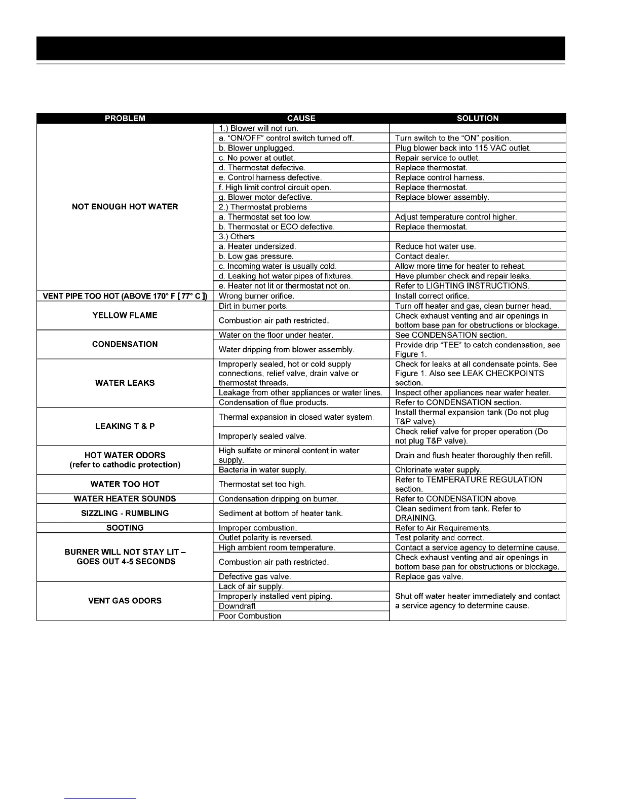 A.O. Smith ARGSS02708 - TROUBLESHOOTING GUIDELINES - COMMON PROBLEMS; Common Operational Problems and Solutions
