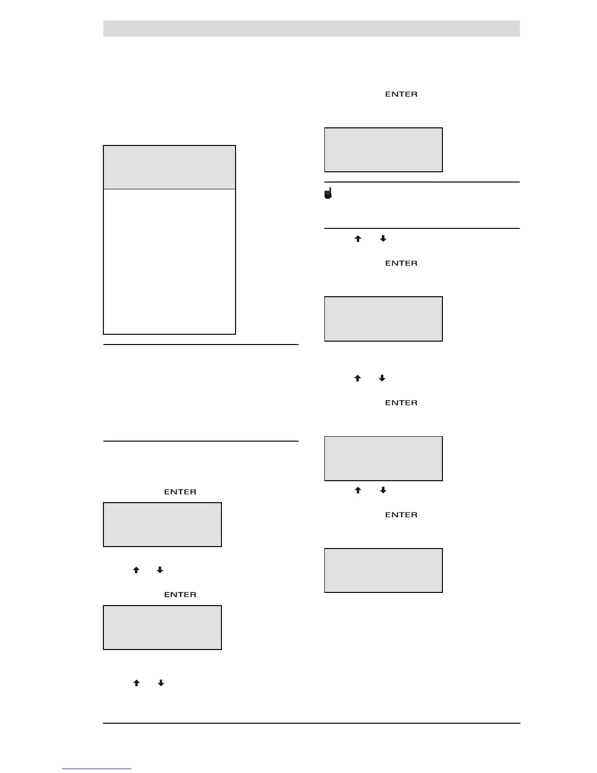 The following settings are entered one by one using