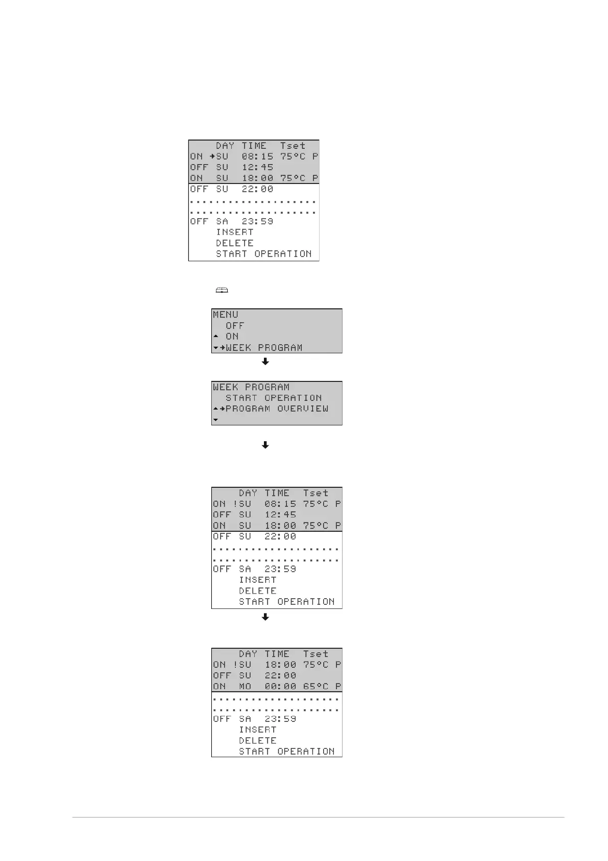 All switch-on/off times are shown sequentially in the display. Assume that the switch-