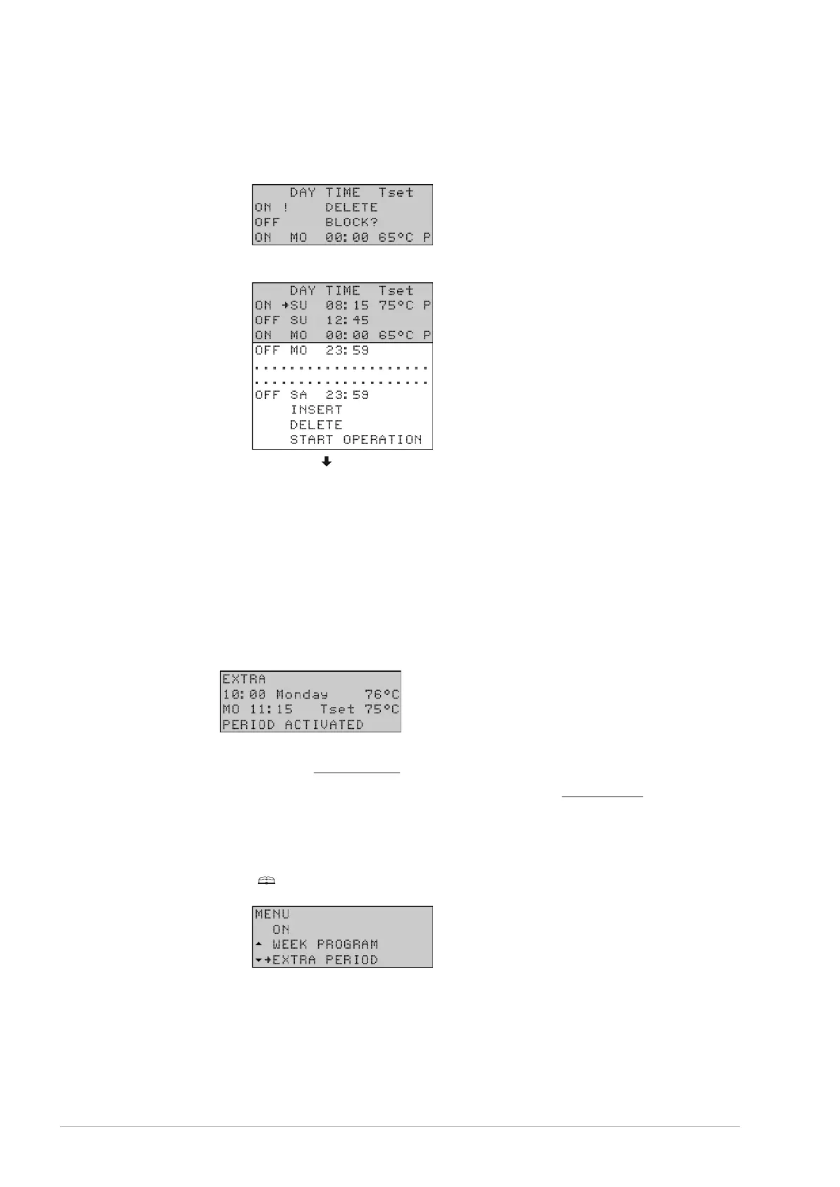 The lines showing switch-on/off times are replaced by the text DELETE BLOCK?. See