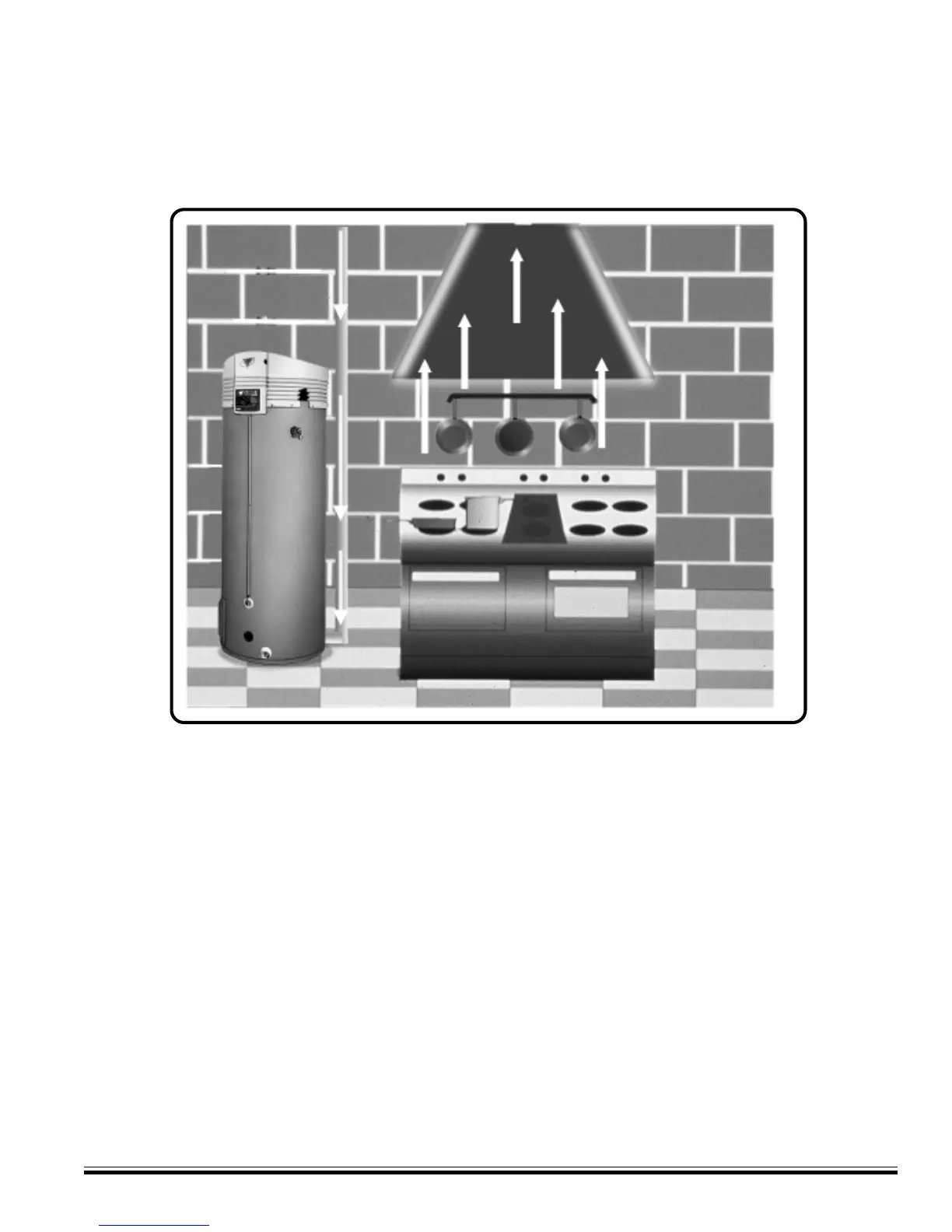 result in air being backdrafted by the restaurant exhaust equipment through the heater causing flue gas spill-