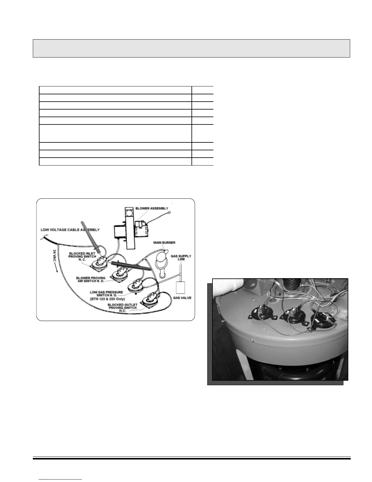 Low gas pressure switch (BTH 120 and 250 only) does