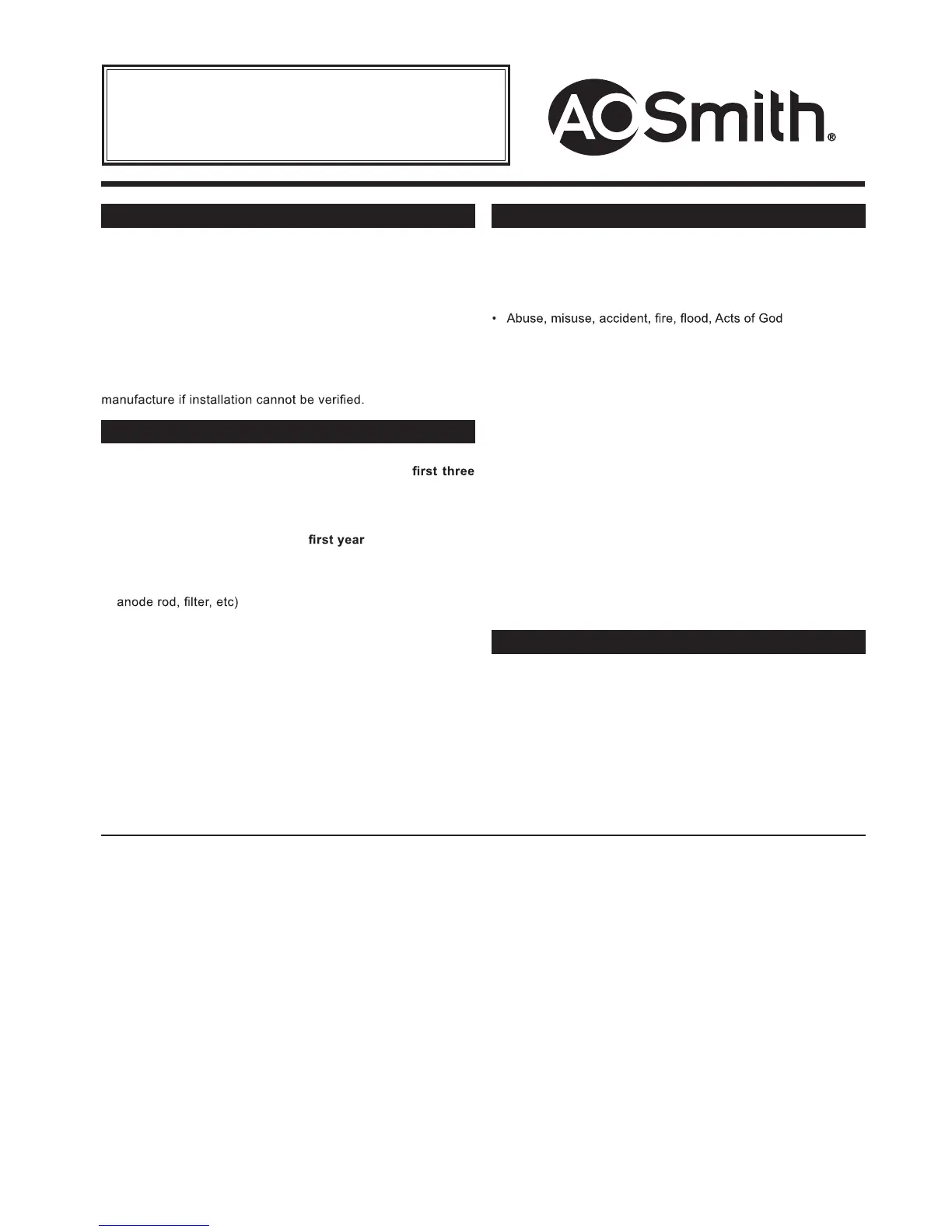 name, address, and telephone number; the model and serial number of the water heater; proof of installation; and a clear description
