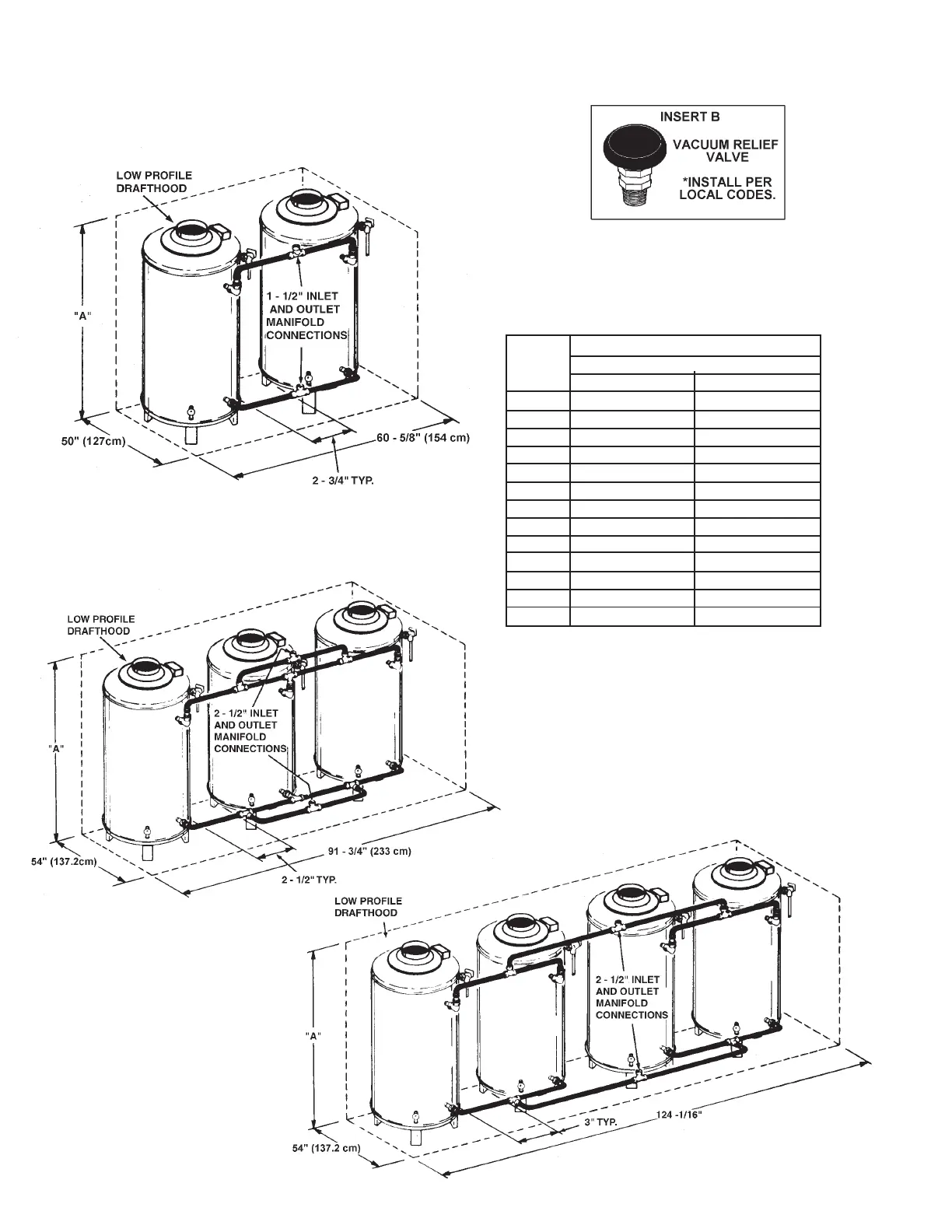 DIMENSIONS “A” INCHES (CM)