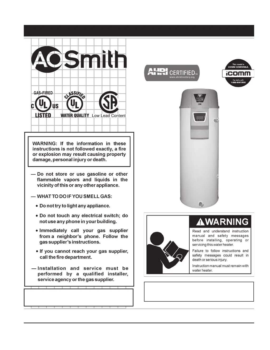 If your A.O. Smith Water Heater's control system isn't working, start by checking the on/off switch to ensure it's in the "on" position and working. If your model uses a standard appliance cord, make sure it's plugged into a 120 VAC outlet. Then, check the circuit breaker and fuses. If you're still having issues, verify there's 120 VAC at the wall outlet and that 120 VAC is supplied to CCB’s J3 Socket pins 1 & 3 (hot wire to pin 1, neutral wire to pin 3). If no 24 VAC is present, consider replacing the transformer. Inspect the communication ports on the CCB and UIM for any signs of damage. Finally, try replacing the UIM communication cable with a standard Cat 5 network cable.