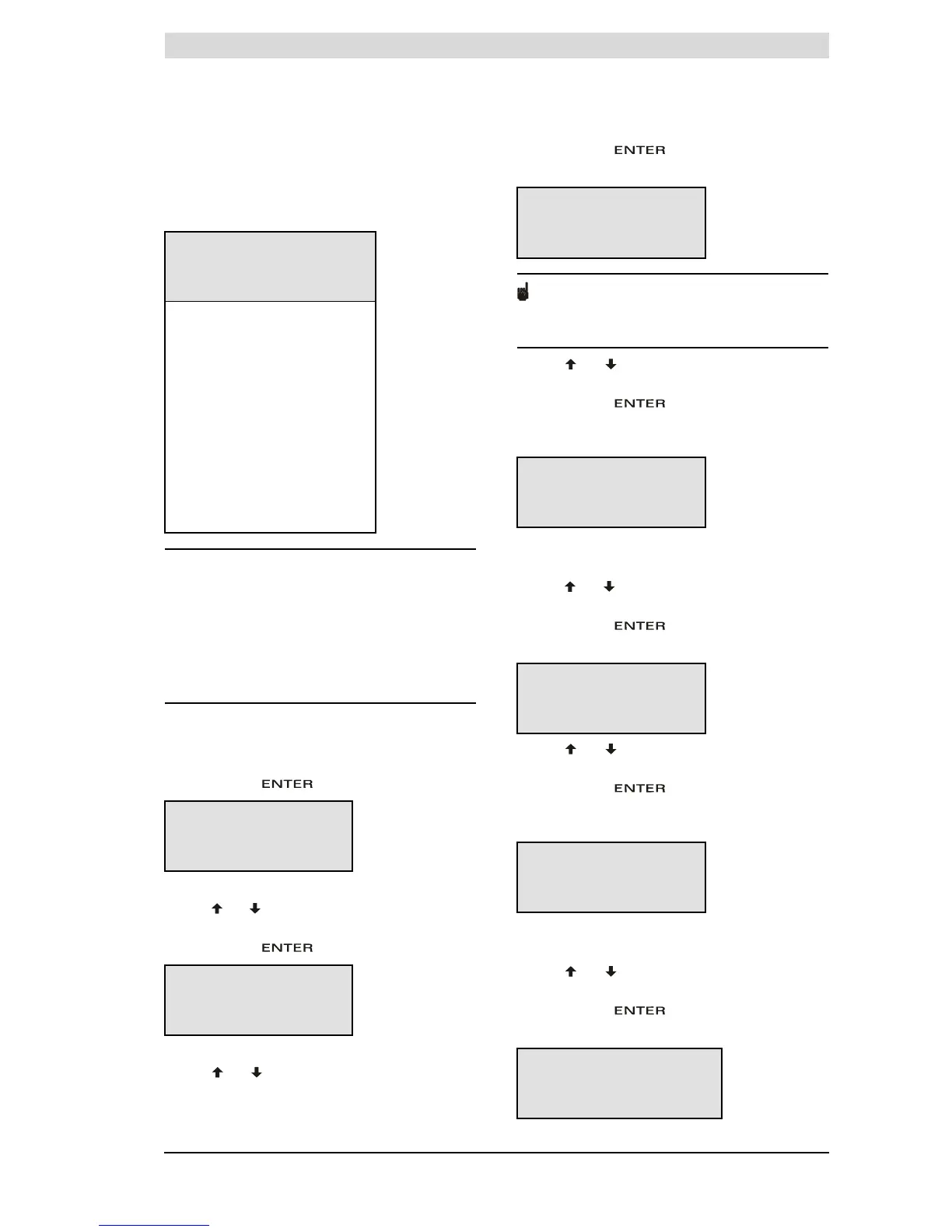 The following settings are entered one by one via the