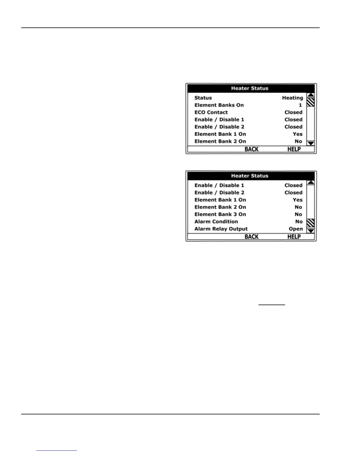 Displays the on/off status of each Bank of heating elements. Yes = On, No = Off.