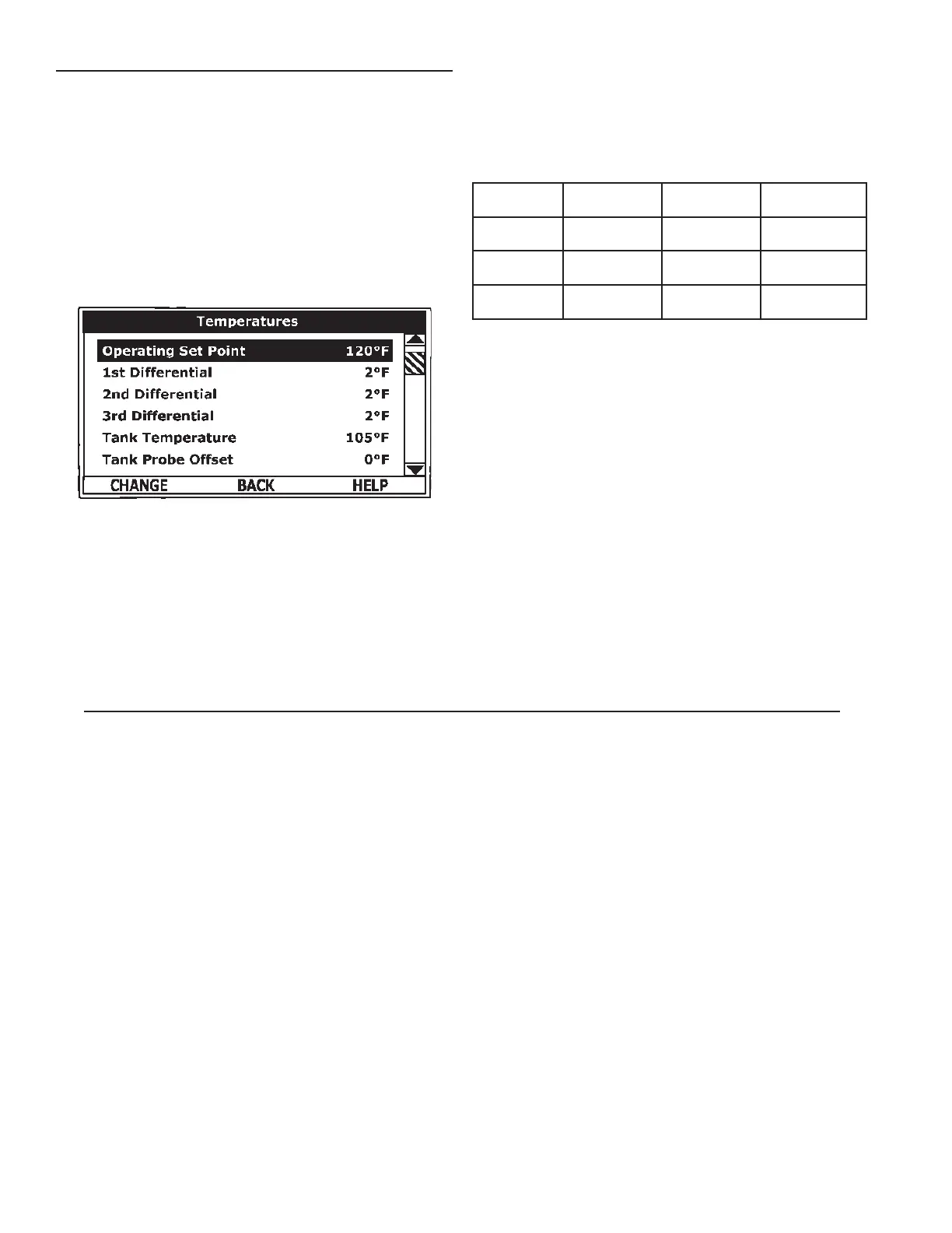 Example: Operating Set Point is 120°F, the 1st Differential Setting is