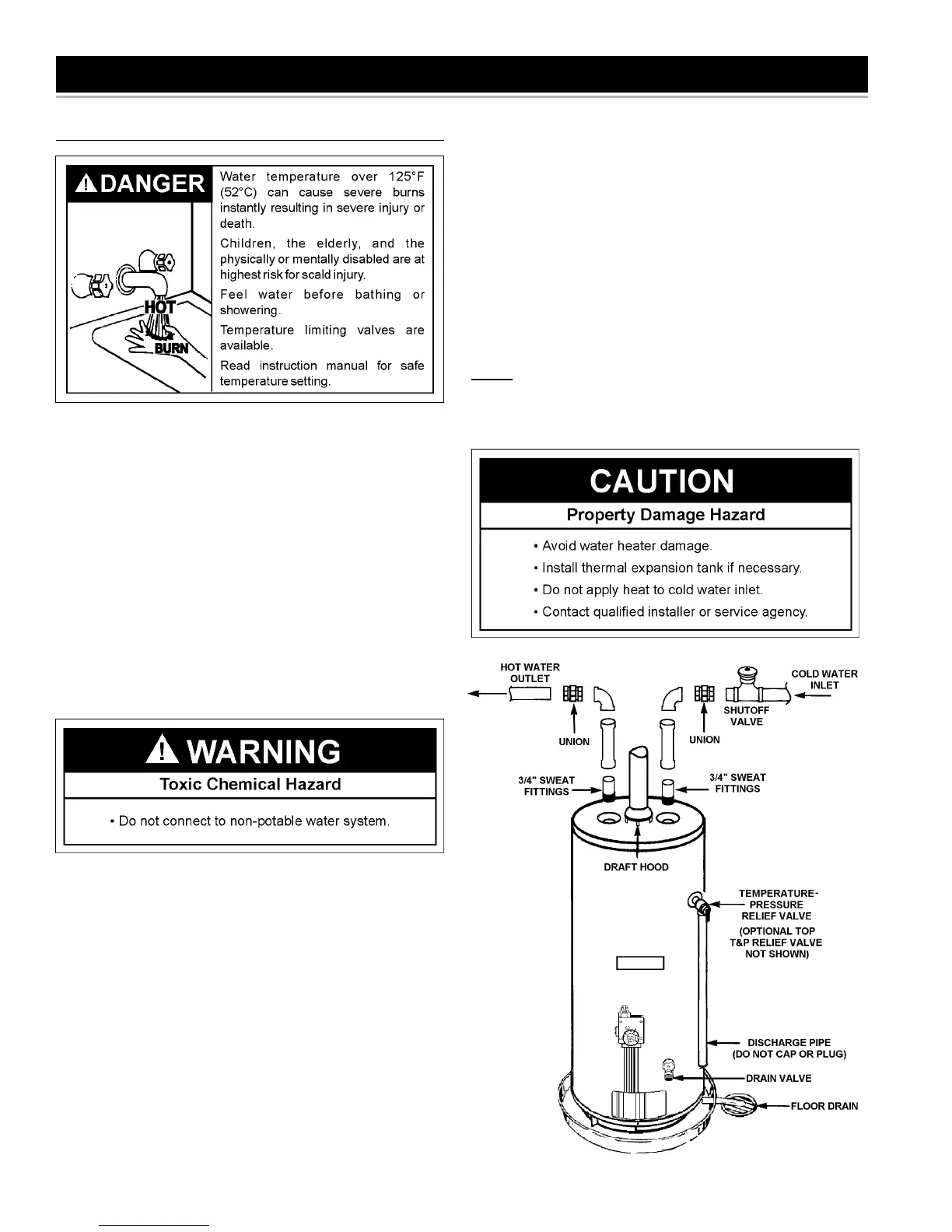 water fittings, it is strongly recommended that di-electric unions
