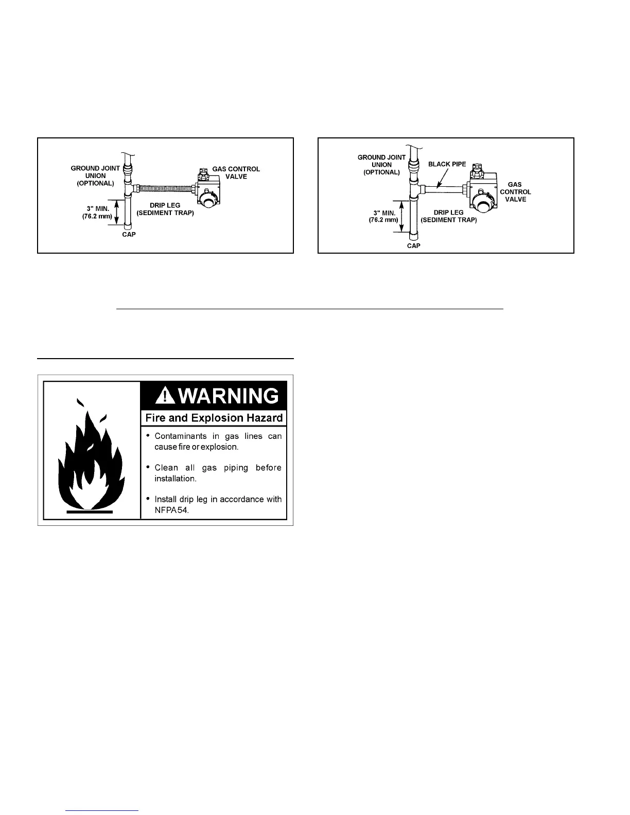 sediment trap) must be incorporated in the piping. The drip leg must be