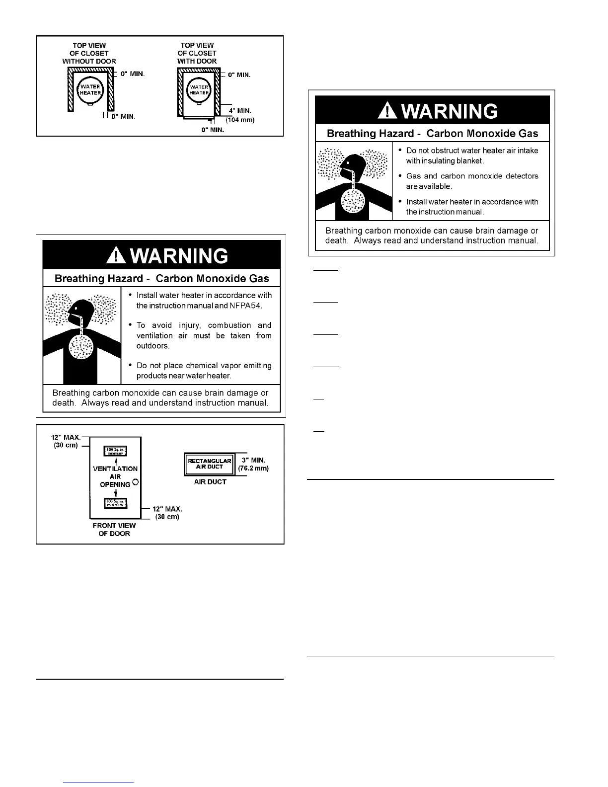 of air for combustion. Do not install in a confined area such as a closet,