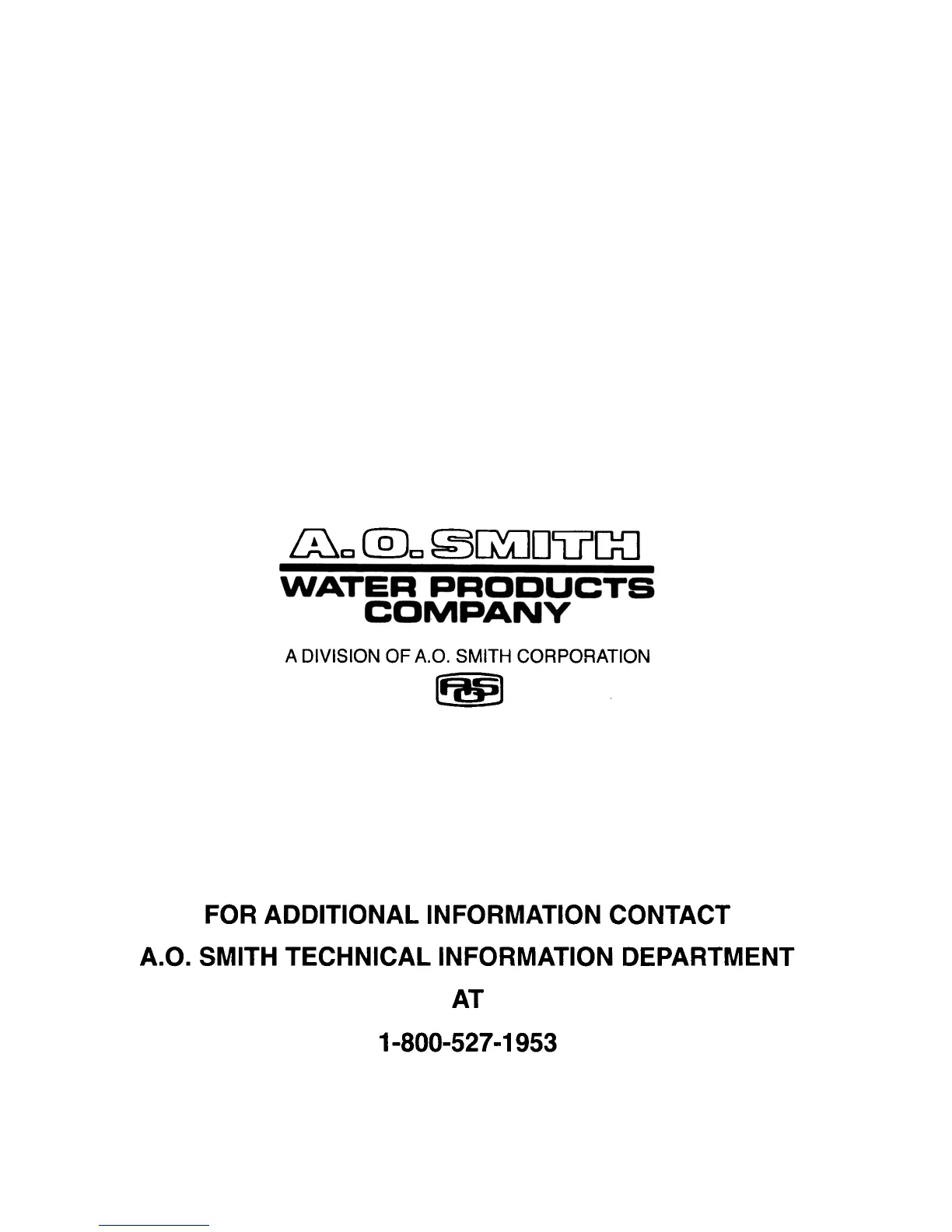 A.O. SMITH TECHNICAL INFORMATION DEPARTMENT
