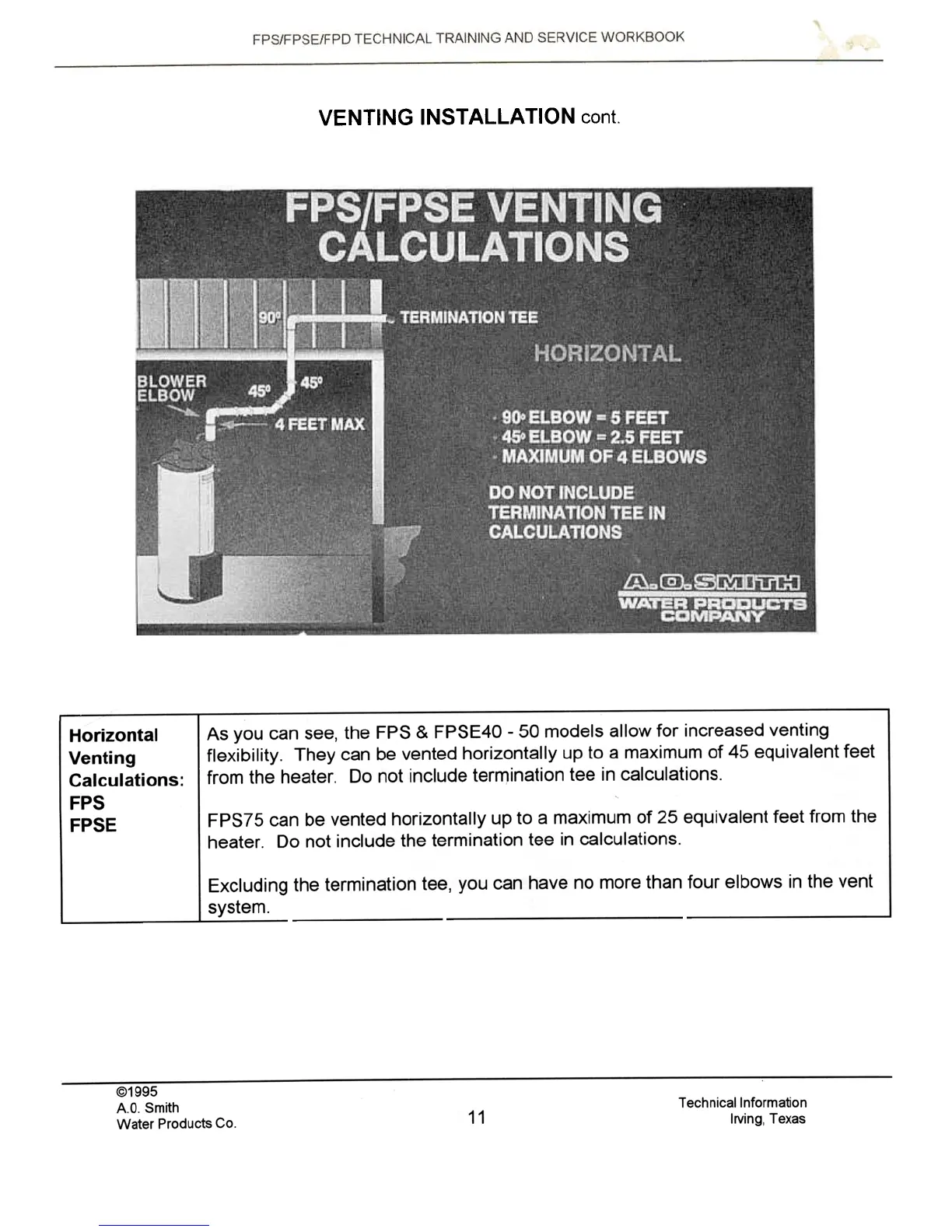 A.O. Smith FPS 75 - Installation; Horizontal Length Calc. FPS, FPSE