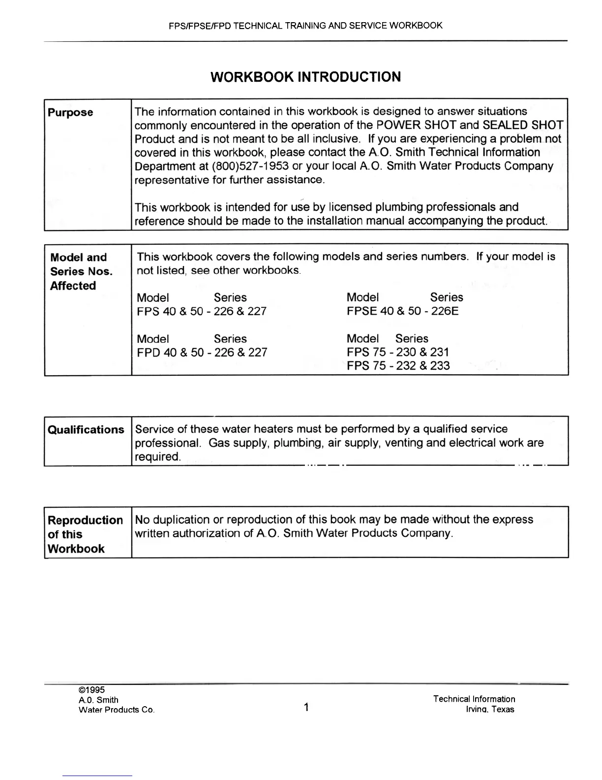 FPS/FPSE/FPD TECHNICAL TRAINING AND SERVICE WORKBOOK