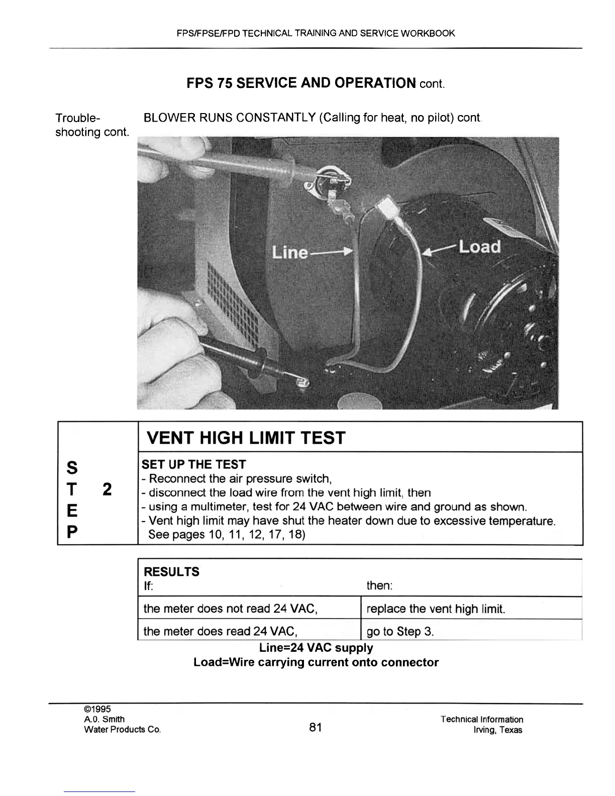 BLOWER RUNS CONSTANTLY (Calling for heat, no pilot) cont