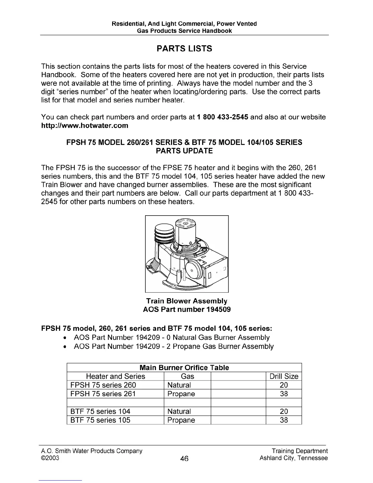 A.O. Smith FPSH 50 - Parts Lists and Ordering